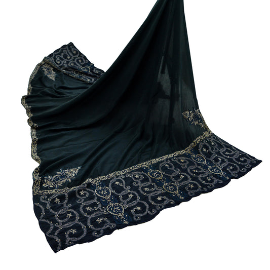 Indian Vintage Heavy Black Dupatta Pure Crepe Silk Long Stole Hand Embroidered Scarves Dabka Zardozi Zari Stole