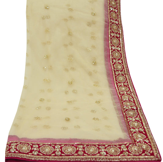 Indian Vintage Heavy Beige Dupatta Net Mesh Long Stole Hand Embroidered Scarves Glass Beaded Golden Sequins Wedding/ Bridal Veil Hijab