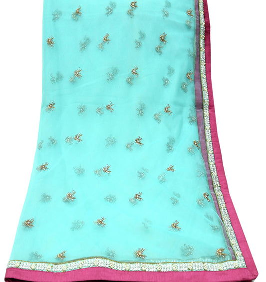 Indian Heavy Sari Green Net/Mesh Hand Embroidered Sarees Craft Fabric 6Yd Sewing Soft Zardozi Wedding sarees With Blouse fabric