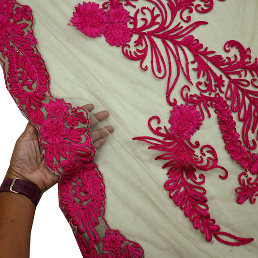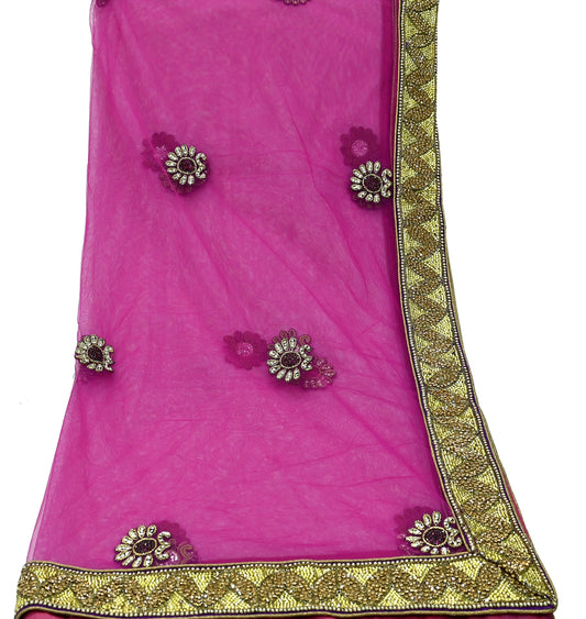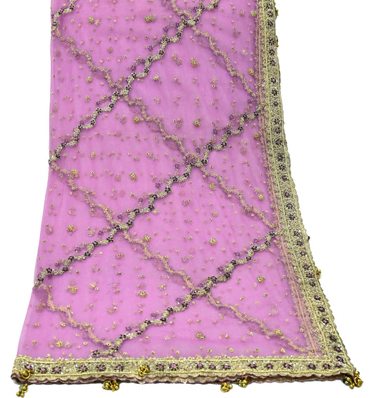 Indian Vintage Heavy Wedding Pink Net/Mesh/ Velvet Hand Embroidered Dupatta Designer By Anamika Khanna Bridal Wear Dabka Zardozi Veil Hijab