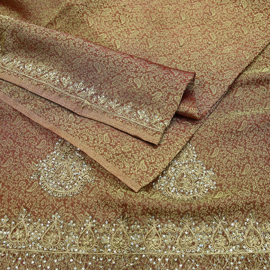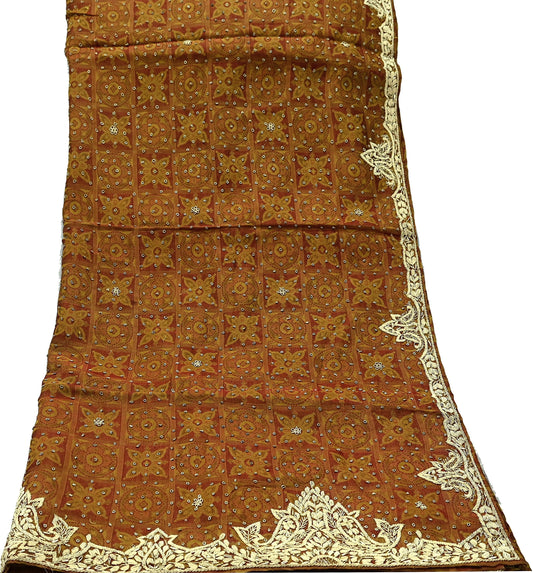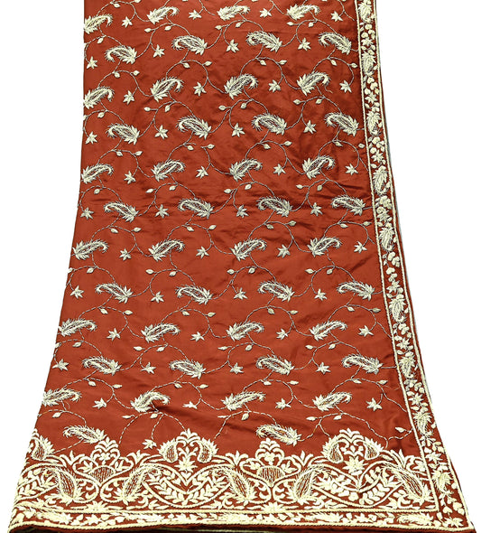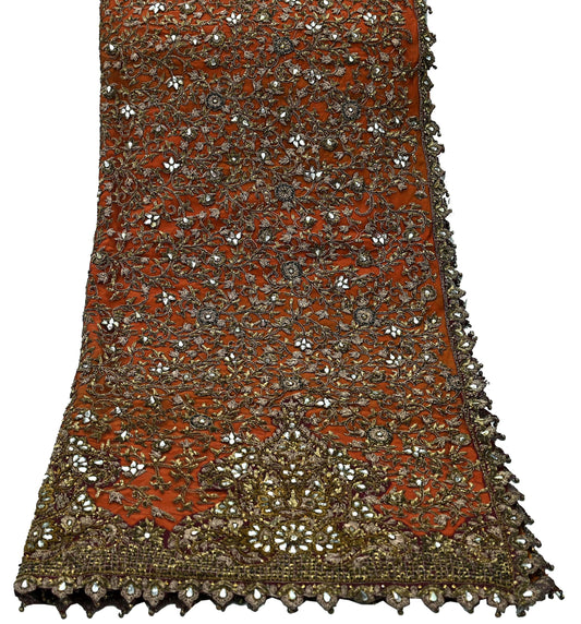Indian Vintage Heavy Wedding Rusty Orange Dupatta Pure Satin Silk Long Stole Hand Embroidered Scarves Golden Zardozi Stole