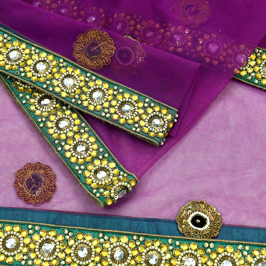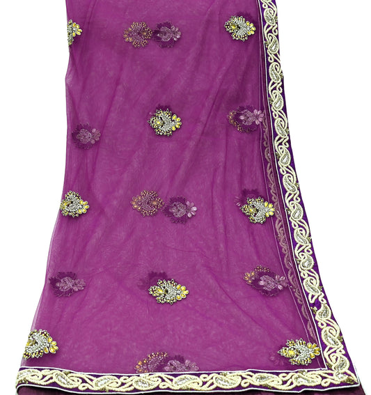 Indian Vintage Heavy Wedding Purple Dupatta Net Mesh Long Stole Hand Embroidered Scarves Golden Zardozi Dabka Zari Stole