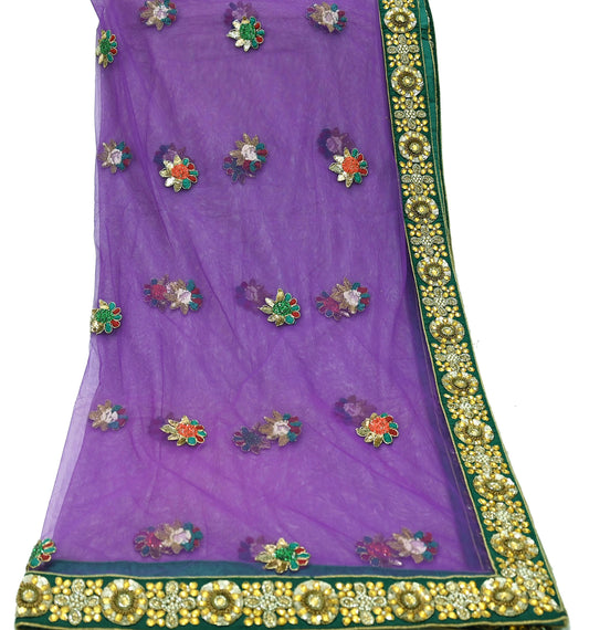 Indian Vintage Heavy Bridal Dupatta Purple Net Mesh Long Stole Hand Embroidered Scarves Golden Zardozi Dabka Zari Wedding Veil Hijab