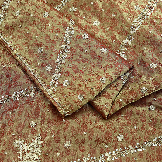 Indian Vintage Sari Golden Tissue Hand Embroidered Sarees Craft Fabric 5Yd Sewing Soft Ethnic Zardozi/Zari Dress making Crafting Upcycle