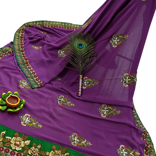 Indian Vintage Heavy Sari Purple Pure Georgette Silk Hand Embroidered Sarees Craft Fabric 5Yd Sewing Ethnic Bollywood saree Zardozi Mukesh