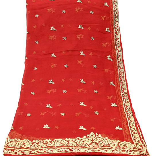 Indian Vintage Heavy Bridal Dupatta Red Pure Chiffon Silk Long Stole Hand Embroidered Hijab Scarf Zardozi/Dabka Zari Wedding Dupatta