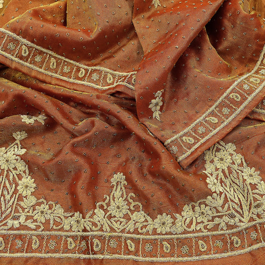 Indian Vintage Heavy Rusty Dupatta Pure Silk Long Stole Hand Embroidered Scarves Dabka Zardozi Zari Stole Wedding Bridal Dupatta Veil
