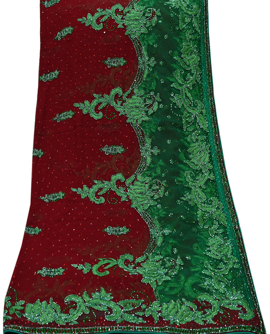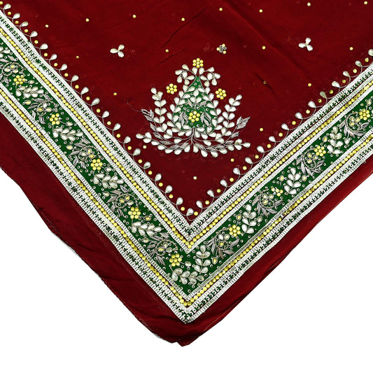 Indian Vintage Heavy Dark Red Dupatta Blend Georgette Long Stole Hand Embroidered Gota Patti Scarves Zardozi Wedding Bridal Veil