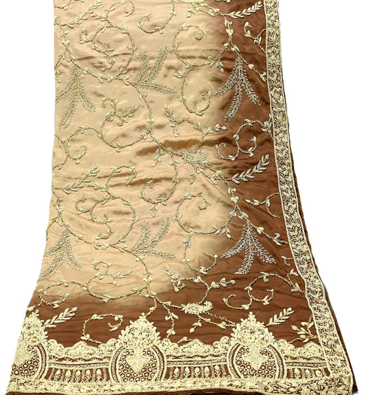 Indian Vintage Heavy Wedding Brown Dupatta Pure Organza Silk Long Stole Hand Embroidered Scarves Zardozi Zari Bridal Veil Wrap Hijab