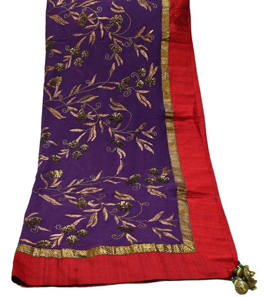 Indian Vintage Heavy Purple Dupatta Pure Georgette Silk Long Stole Hand Embroidered Gota Patti Scarf Zari
