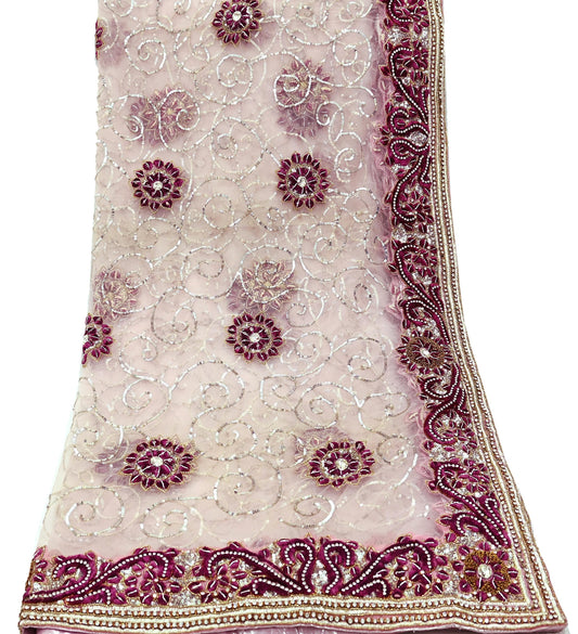 Indian Pre-owned Heavy Dupatta Pink Net Long Stole Hand Embroidered By Designer Abu Jani Scarves Bridal Veil