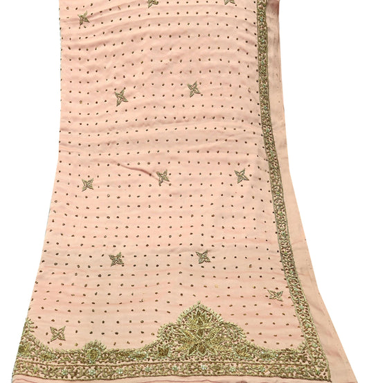 Indian Vintage Heavy Wedding Peach Dupatta Pure Satin Silk Long Stole Hand Embroidered Scarves Golden Zardozi Stole