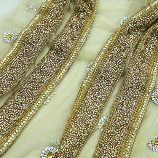 Indian Vintage Heavy Golden Dupatta Pure Tissue Silk Long Stole Hand Embroidered Scarves Zari Zardozi/Dabka