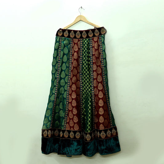 Indian Vintage Green & Maroon Pure Georgette Silk Hand Embroidered Skirt Bridal Party Wear Bollywood Lehenga Zardozi/ Dabka, Zari
