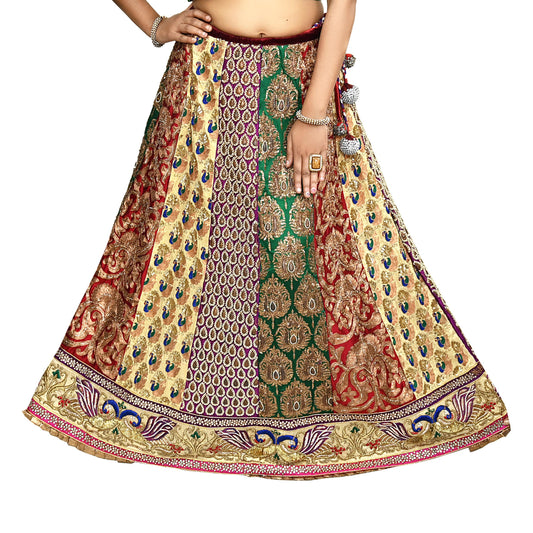 Indian Sabyasachi Bridal Skirt Multi Hand Embroidered Peacock Design Zardozi Preowned Wedding Outfit Raw Silk