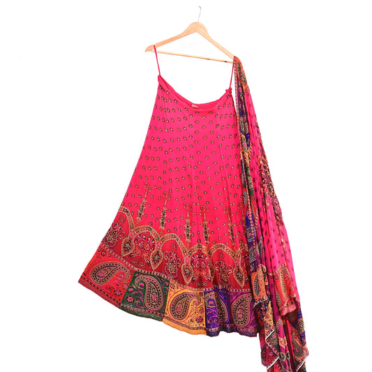 Indian Vintage red Pure satin silk Bandhani printed Lehenga/Skirt garba night Wear
