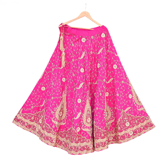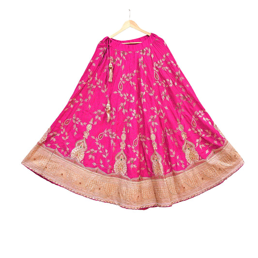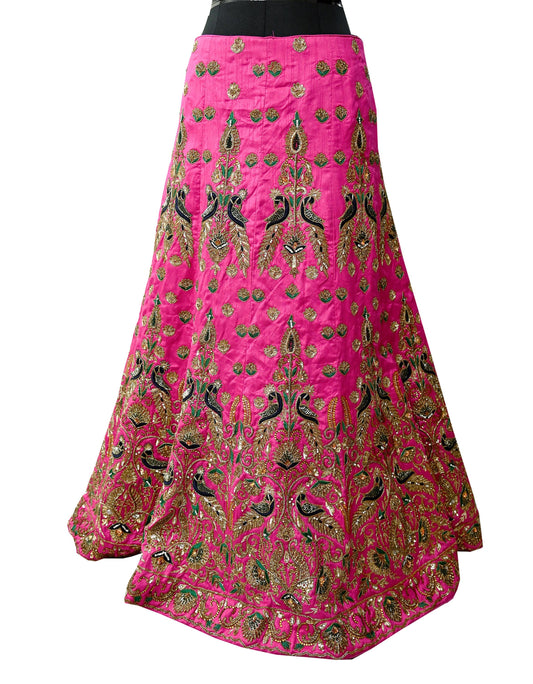 Indian Heavy Rani Pink Hand Embroidered Semi Stitched Lehenga/Skirt Bridal Wear Zardozi/ Dabka Bollywood skirt party wear