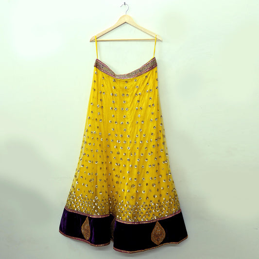 Indian Vintage Yellow Net Hand Embroidered Skirt Bridal Party Wear Bollywood Lehenga Zardozi/ Dabka, Zari