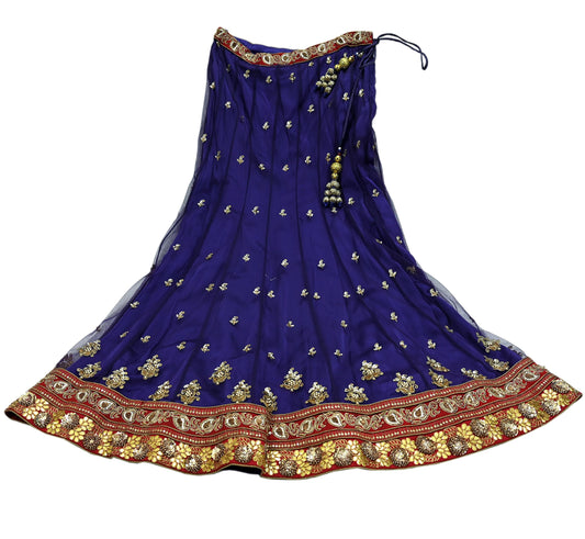 Indian Vintage Purple Net Hand Embroidered Skirt Bridal Party Wear Bollywood Lehenga Zardozi/ Dabka, Zari