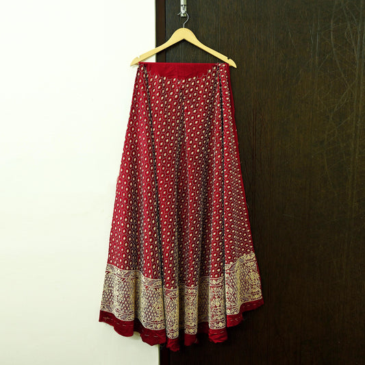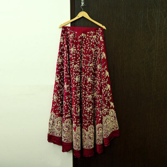 Indian Vintage Heavy Wedding Maroon Unstitched skirt Pure Satin Silk Hand Embroidered Lehenga Bridal wear Ethnic Skirt