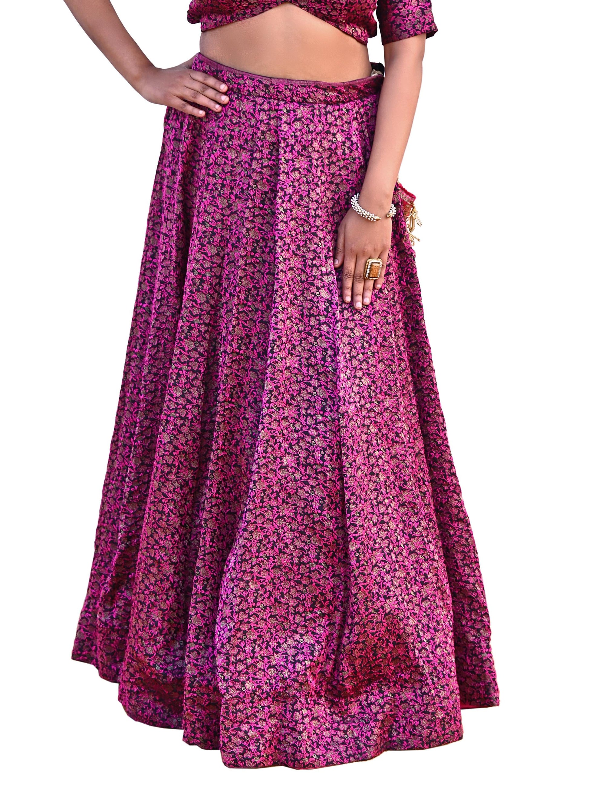 Handwoven Brocade Pure silk Lehenga Skirt β Heavy, full-flare silhouette with exquisite zari floral motifs.
