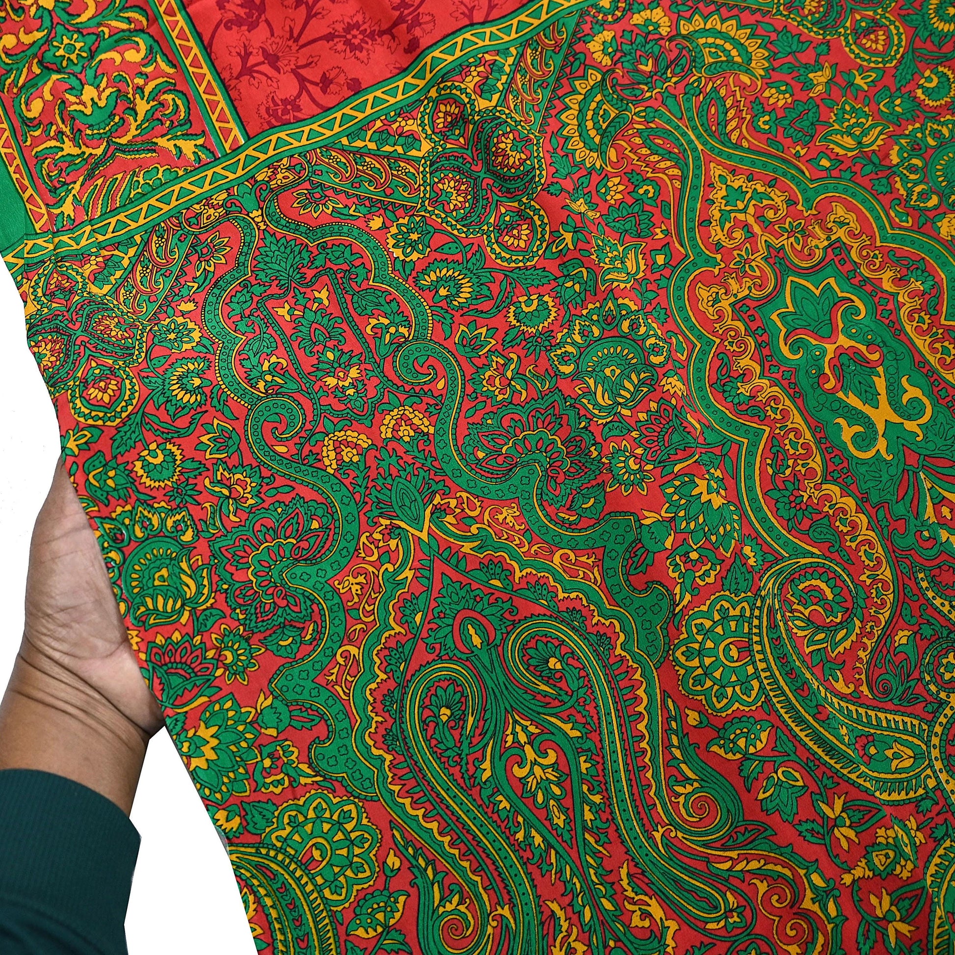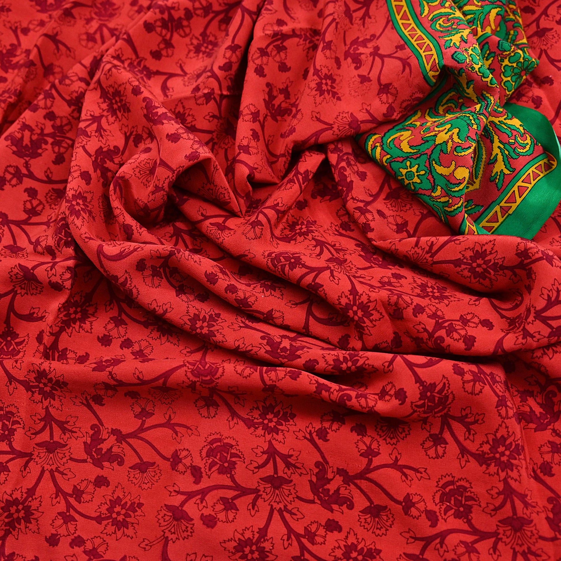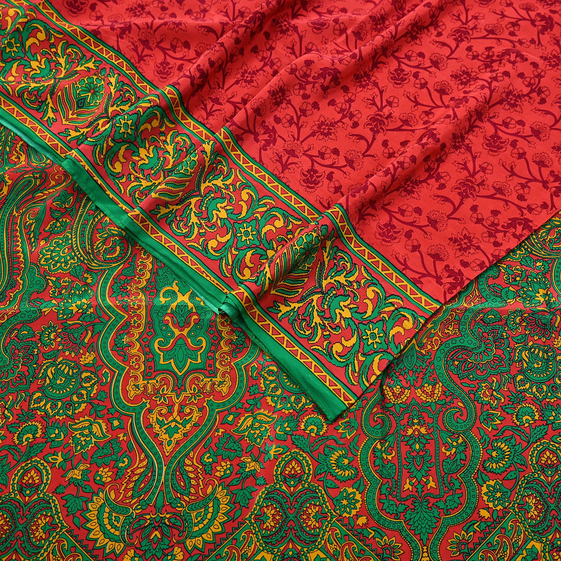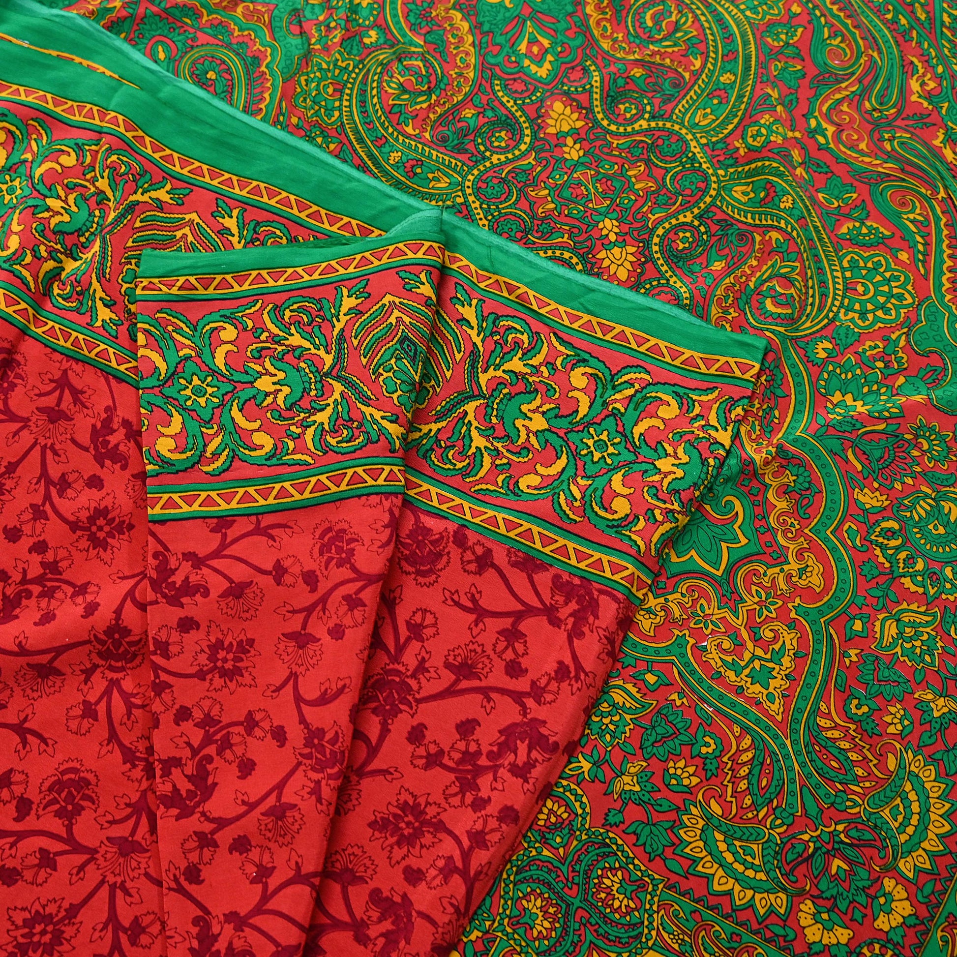 EXCELLENT QUALITY Indian Vintage Orange & Green Saree Pure Crepe Silk Printed Sari 6yd Sewing Floral Soft Craft Fabric Wrap Dress Making