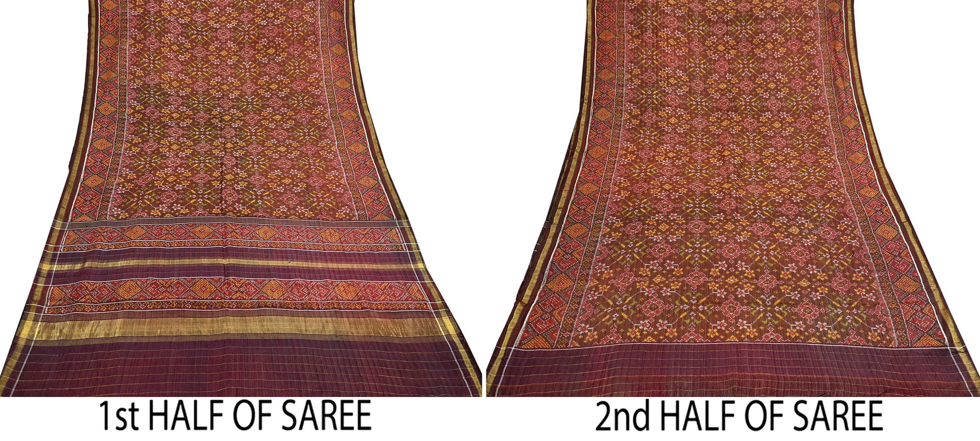 Indian Antique Vintage Brown Hand Woven Double Ikat Patola Sarees 100% Pure Silk Craft Fabric 5Yd Dress Making Sewing For wearing