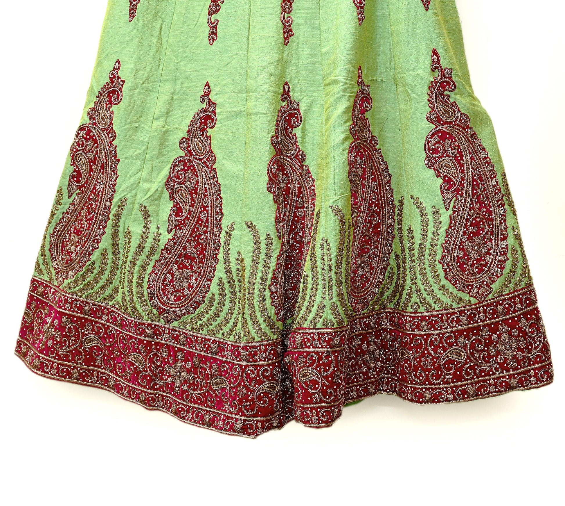 Indian Heavy Parrot Green Hand Embroidered Semi Stitched Lehenga/Skirt Bridal Wear Zardozi/ Dabka Bollywood skirt party wear