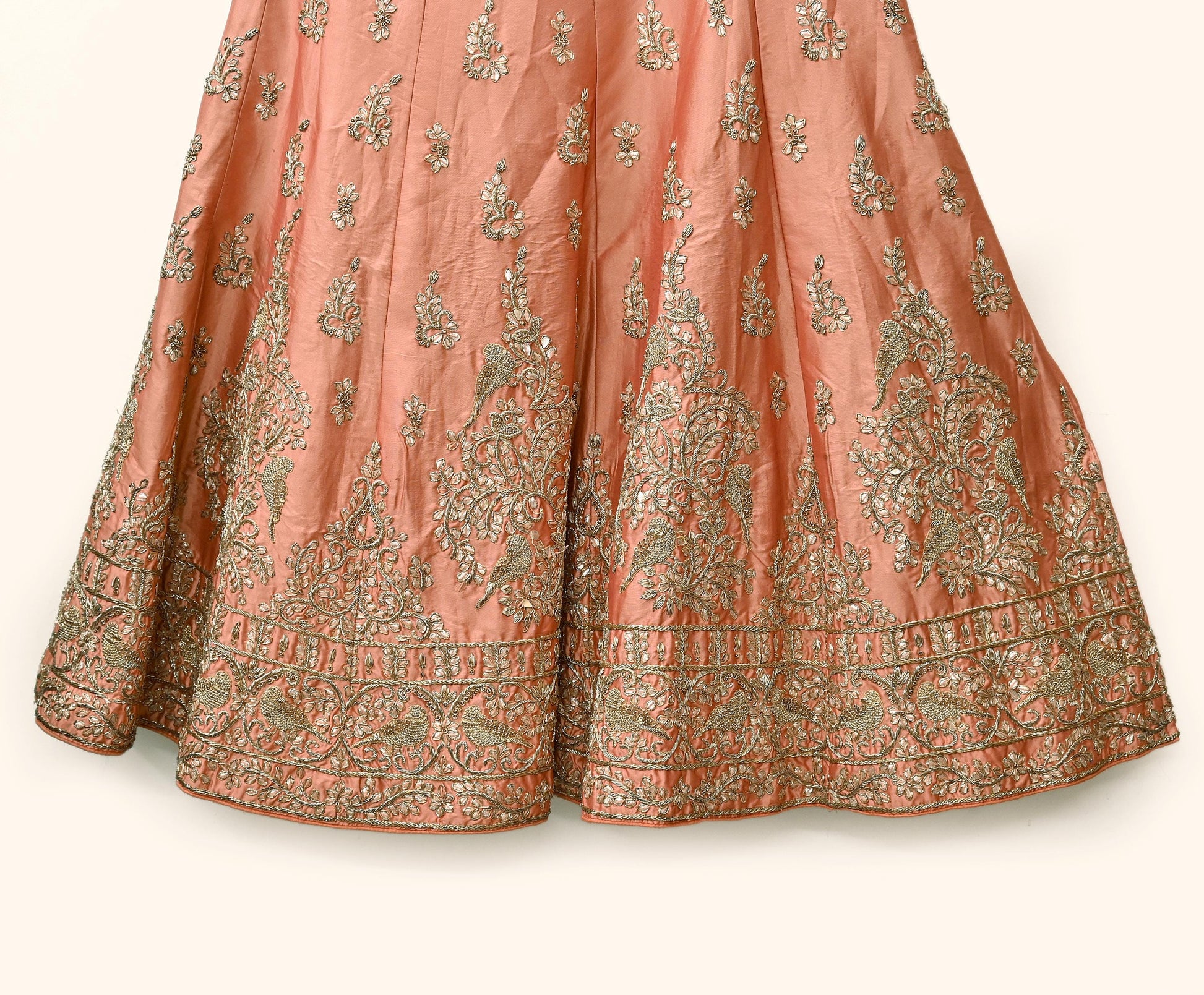 Indian Heavy Peach Hand Embroidered Semi Stitched Lehenga/Skirt Bridal Wear Zardozi/ Dabka Bollywood skirt party wear