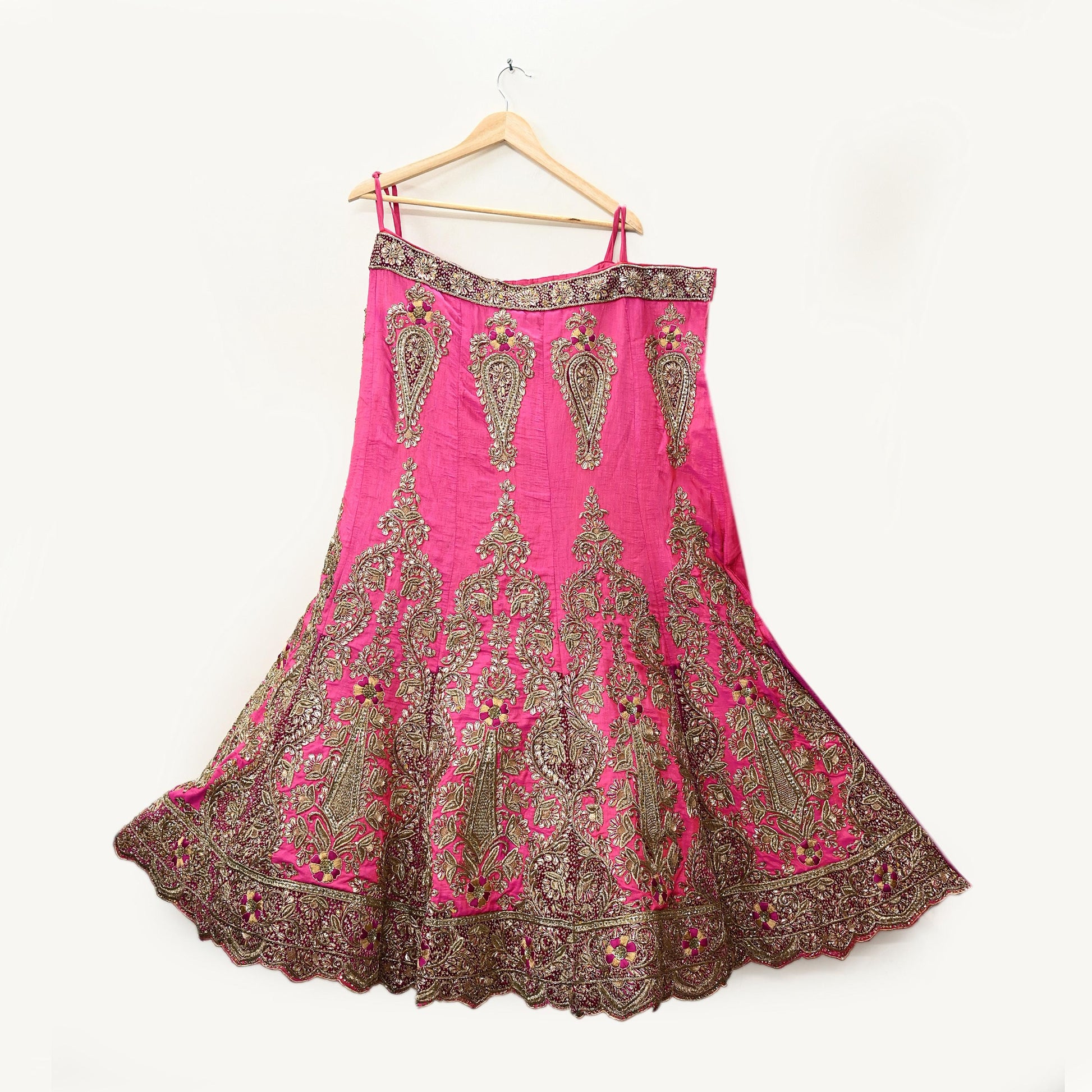 Indian Heavy Pink Hand Embroidered Semi Stitched Lehenga/Skirt Bridal Wear Zardozi/ Dabka Bollywood skirt party wear