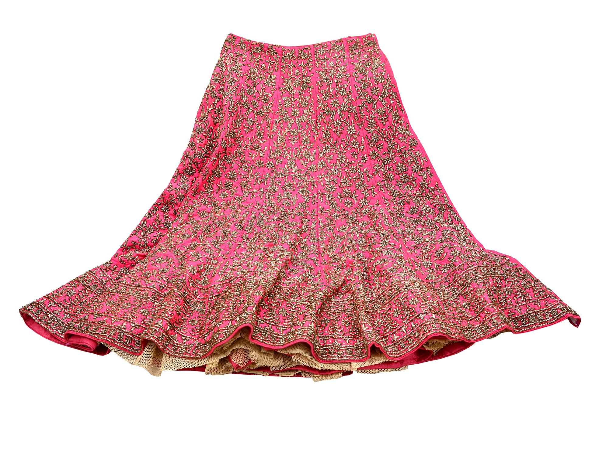 Indian Heavy Pink Hand Embroidered Semi stitched Lehenga/Skirt Bridal Wear Zardozi/ Dabka Bollywood skirt Party wear