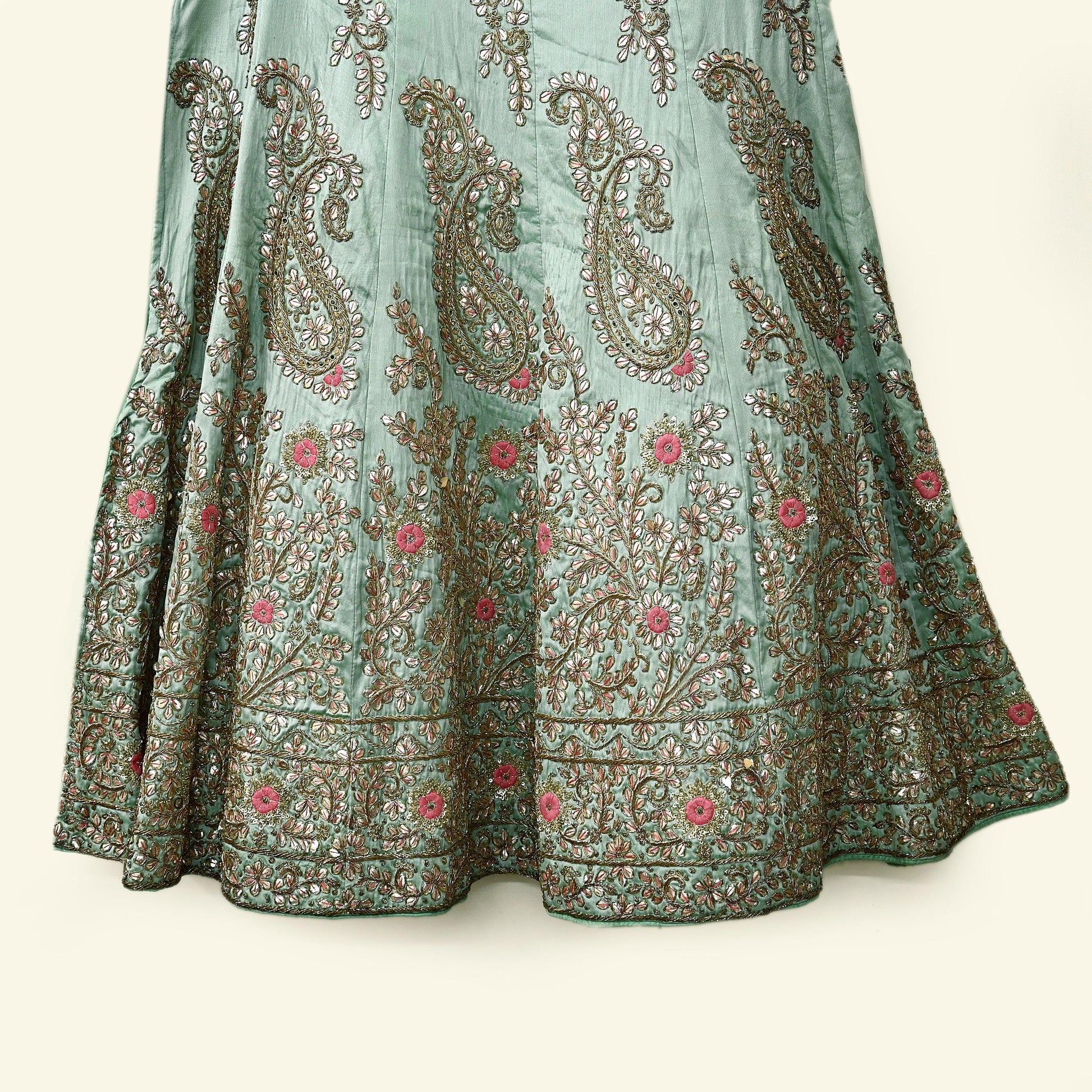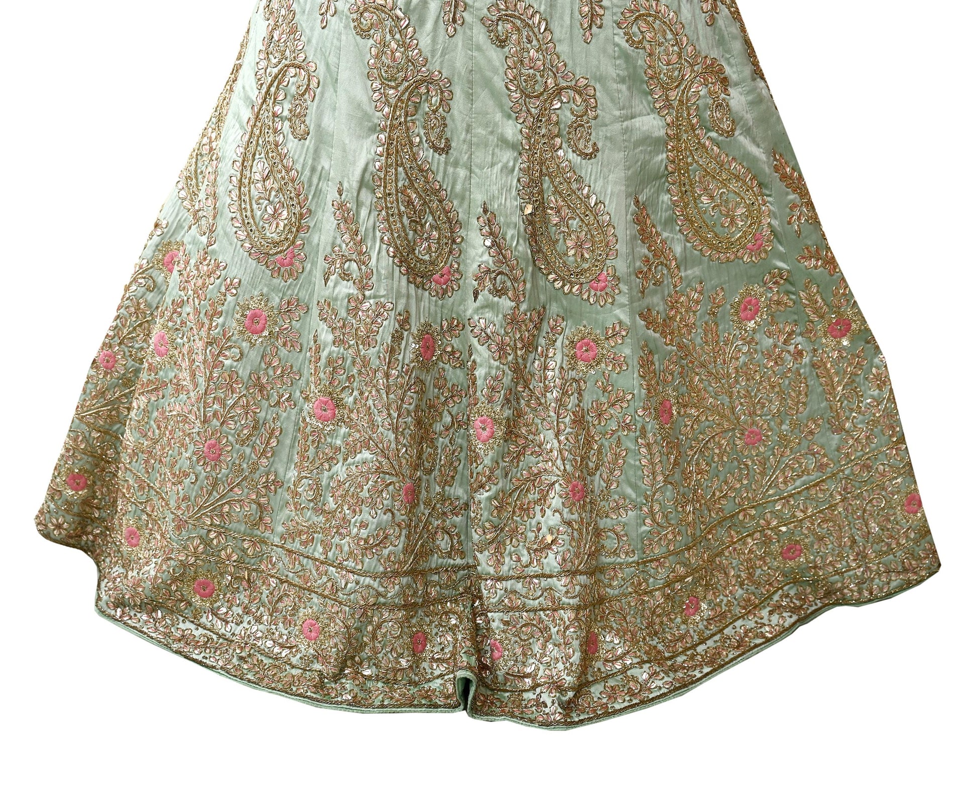 Indian Heavy Pista Green Hand Embroidered Semi Stitched Lehenga/Skirt Bridal Wear Zardozi/ Dabka Bollywood skirt party wear