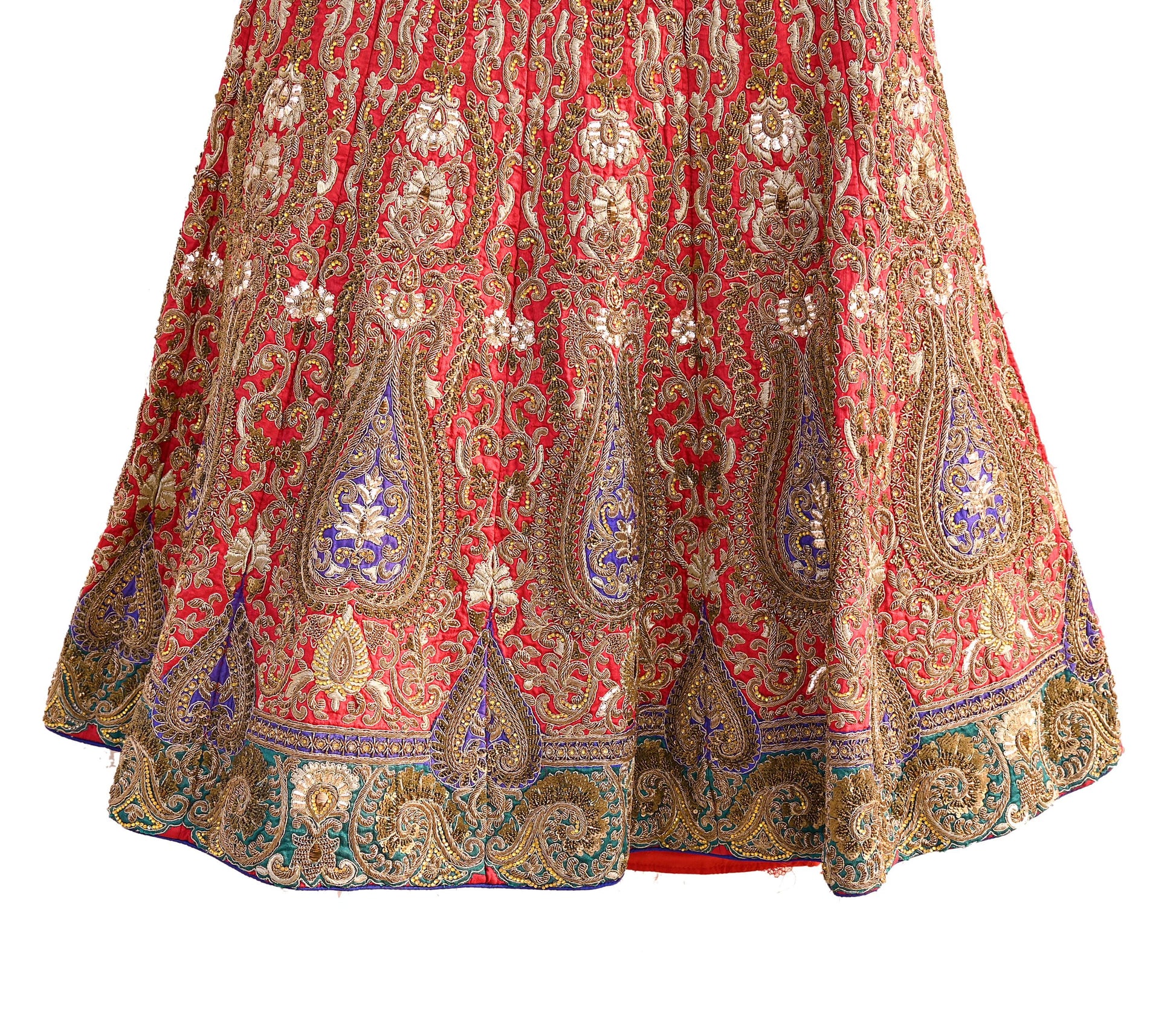 Indian Heavy Red Colored Raw Silk/Net Hand Embroidered Lehenga 2pcs Set By Designer Sabyasachi Bridal Wear
