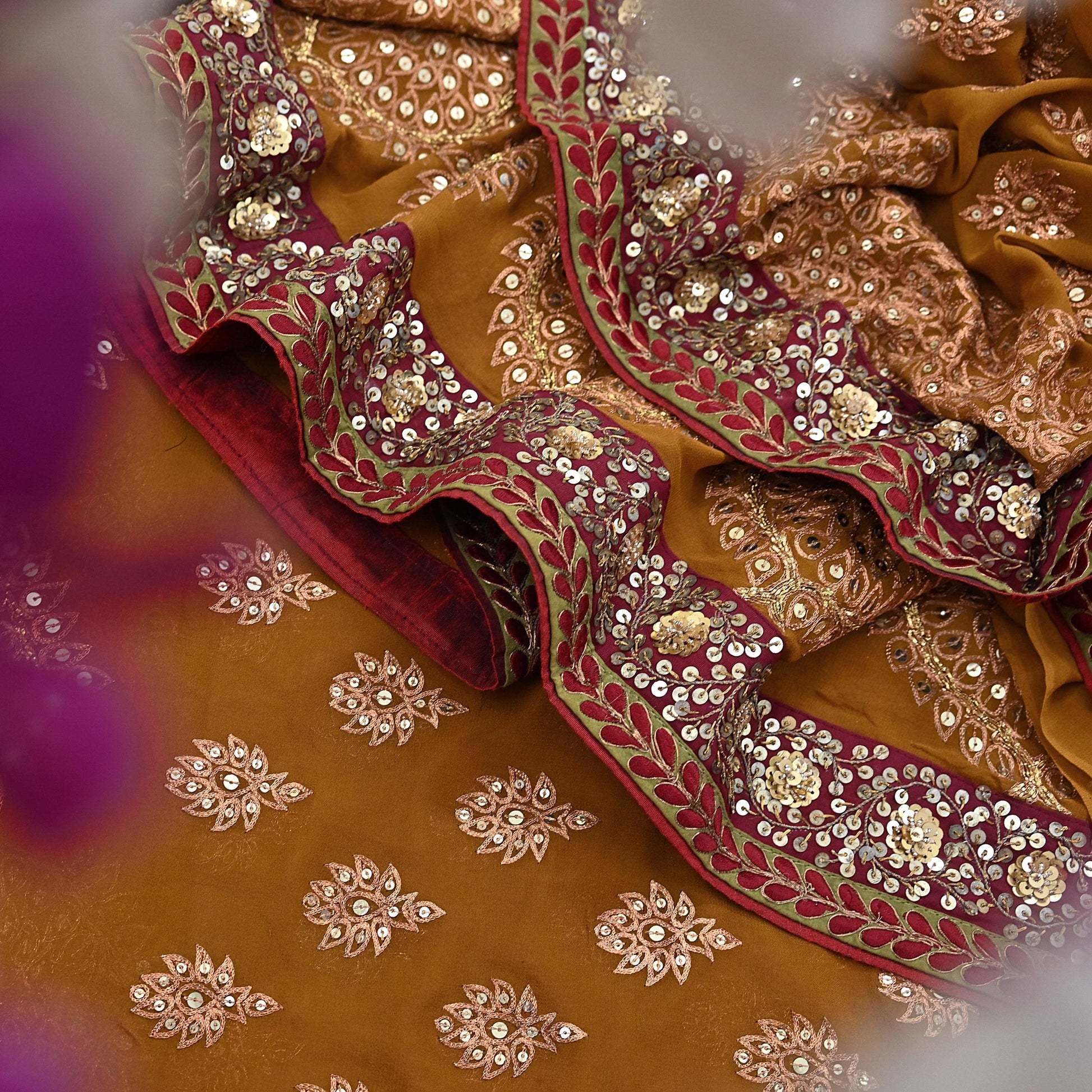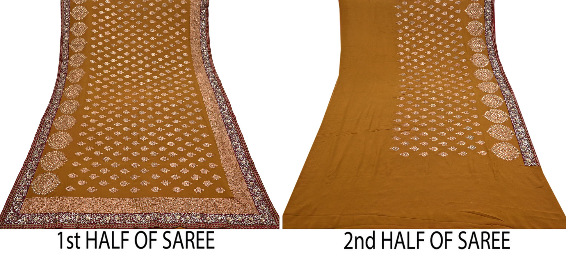 *Vintage Heavy Beautiful Saffron Colored Hand Embroidered Pure Georgette Silk Designer Sabyasachi Sari.