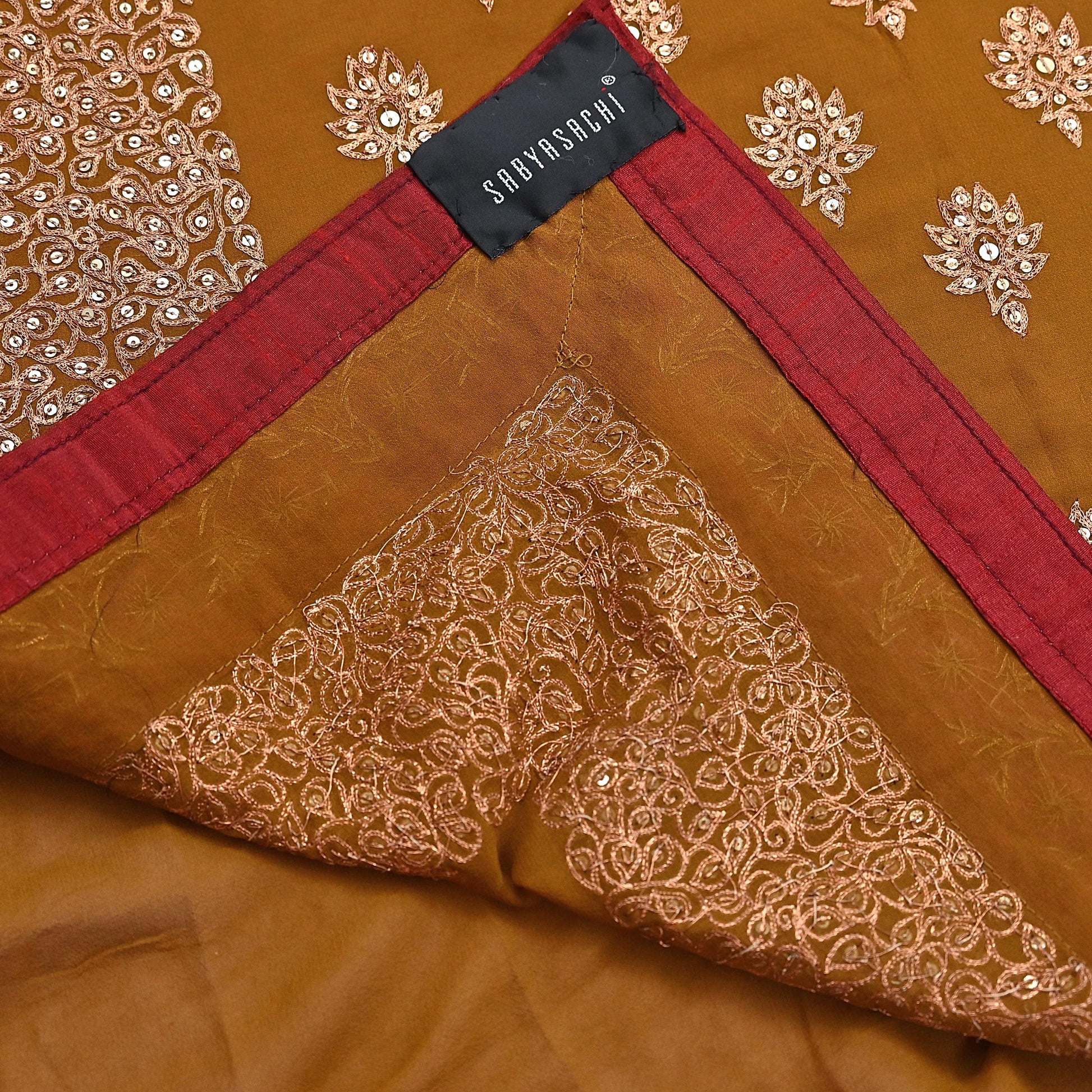 Indian Heavy Sari Saffron Pure Georgette Silk Hand Embroidered Sarees Designer Sabyasachi 6Yd Sewing Ethnic Bollywood party wear saree