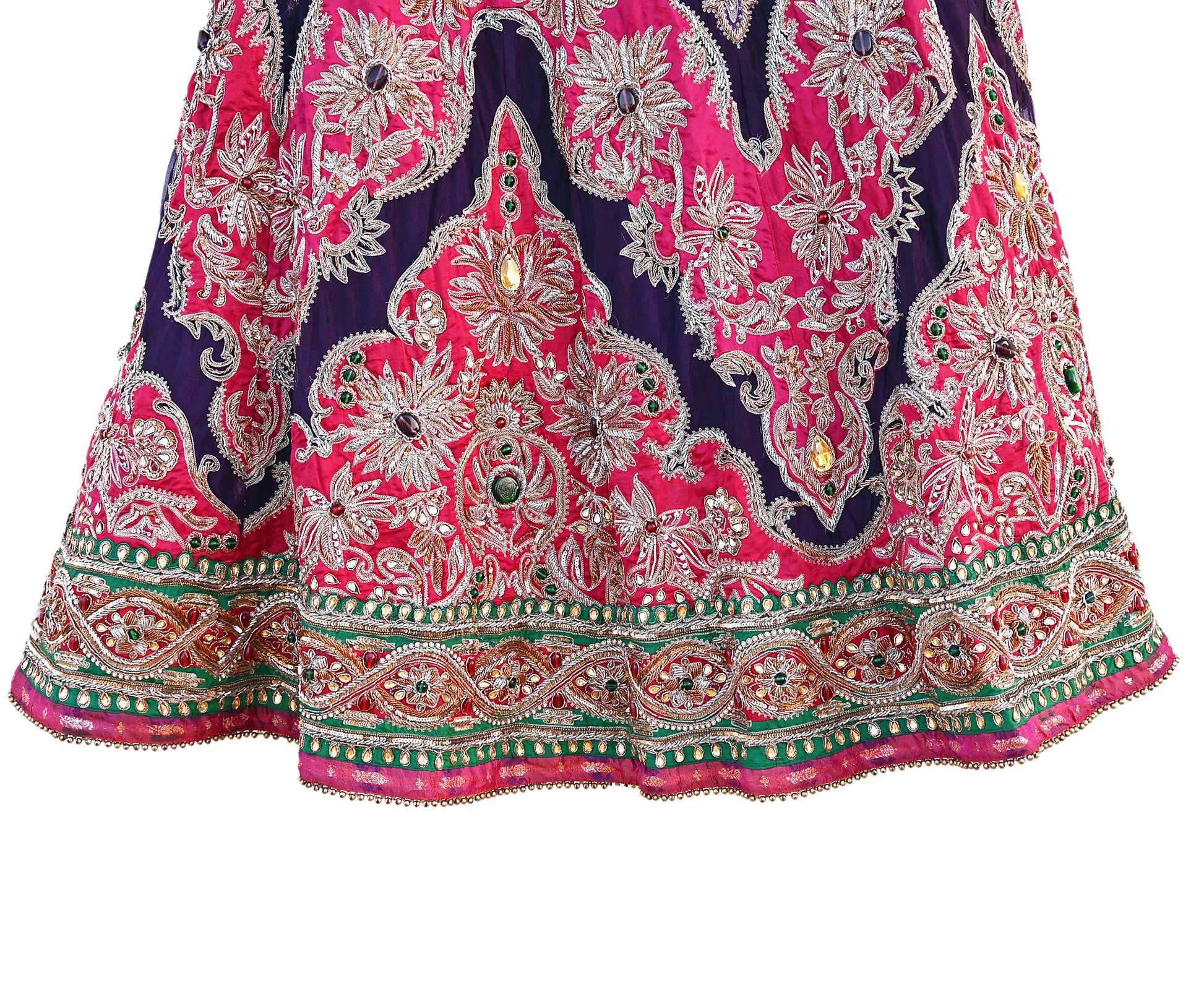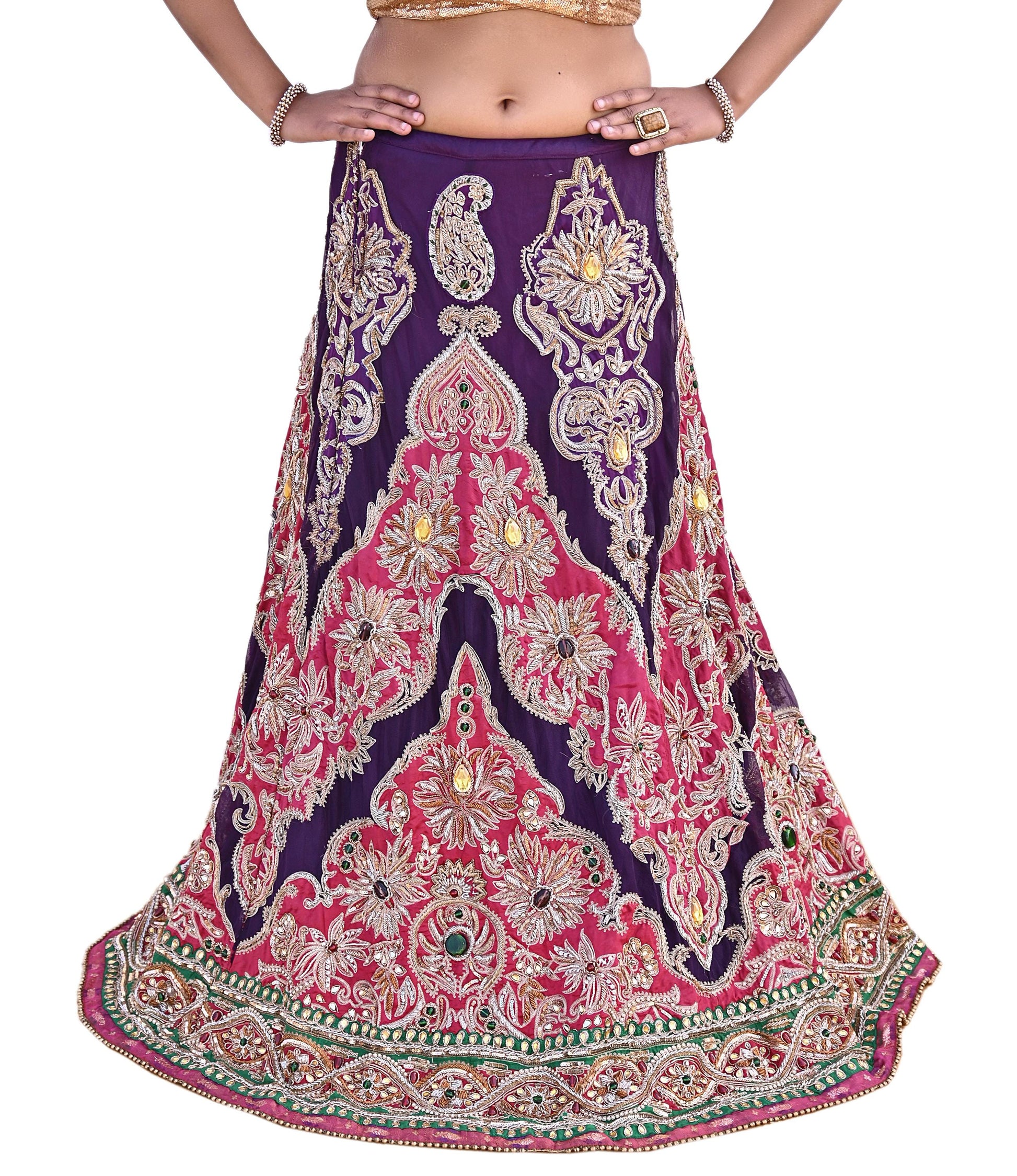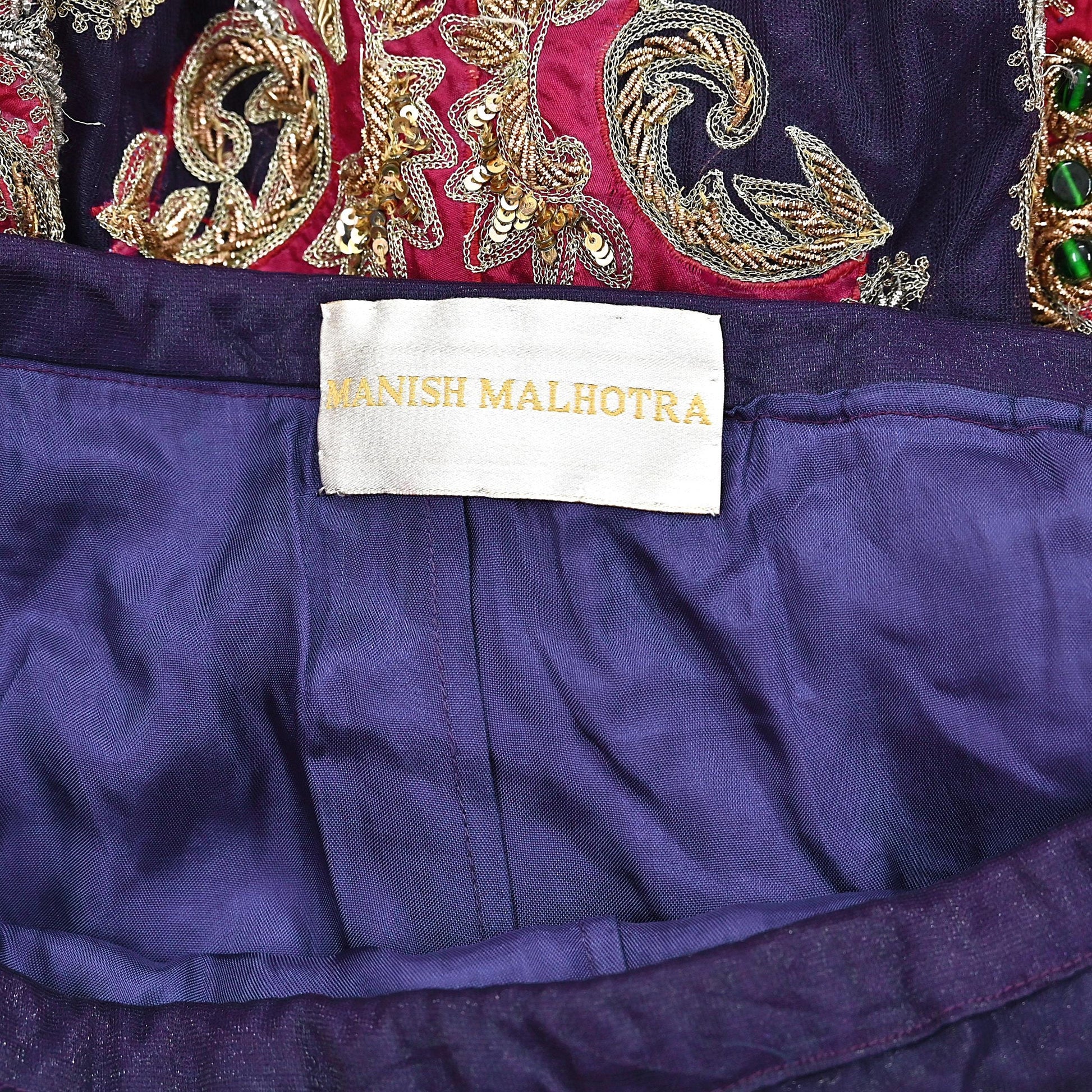 *Vintage Heavy Hand Embroidered Heavy Lehenga/ Skirt Set Designer By Manish Malhotra Pure Silk & Net Fabric In purple & Pink Color.