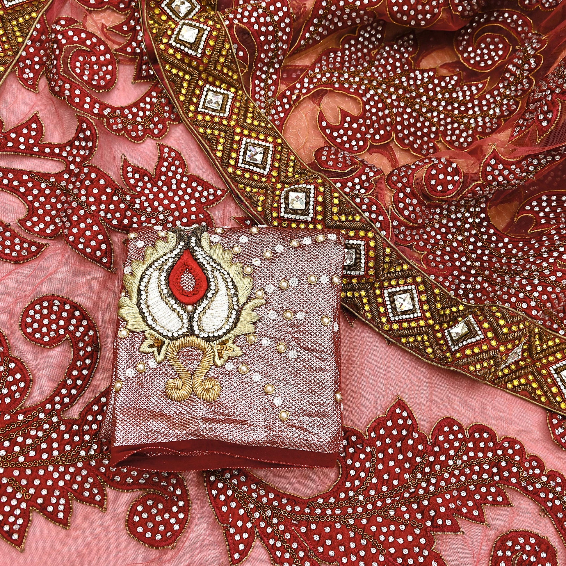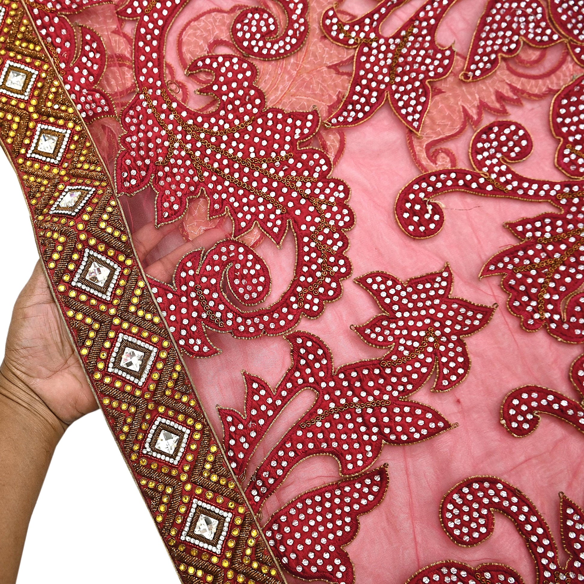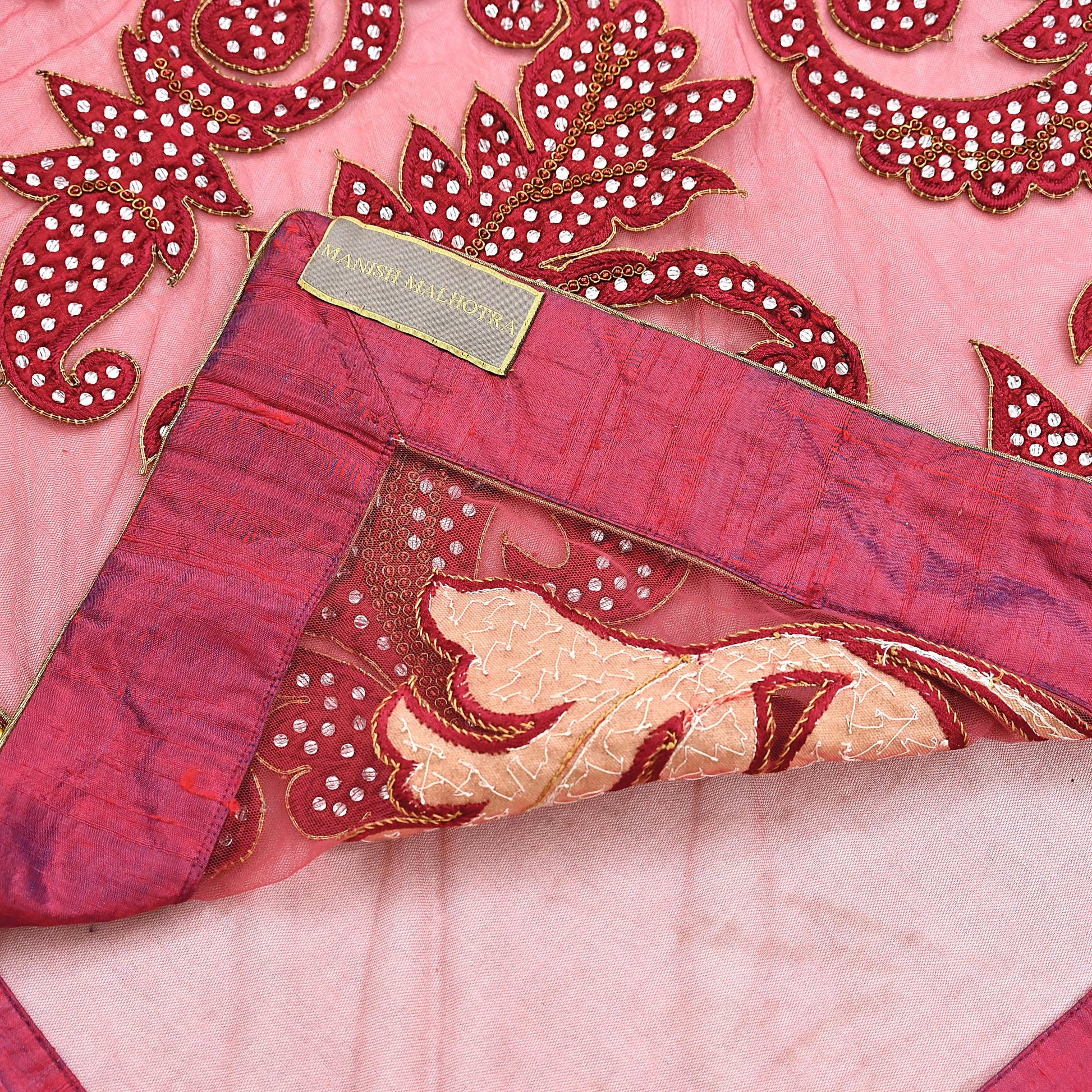 *Beautiful Red Colored Hand Embroidered Manish Malhotra Designer Saree Net Fabric.