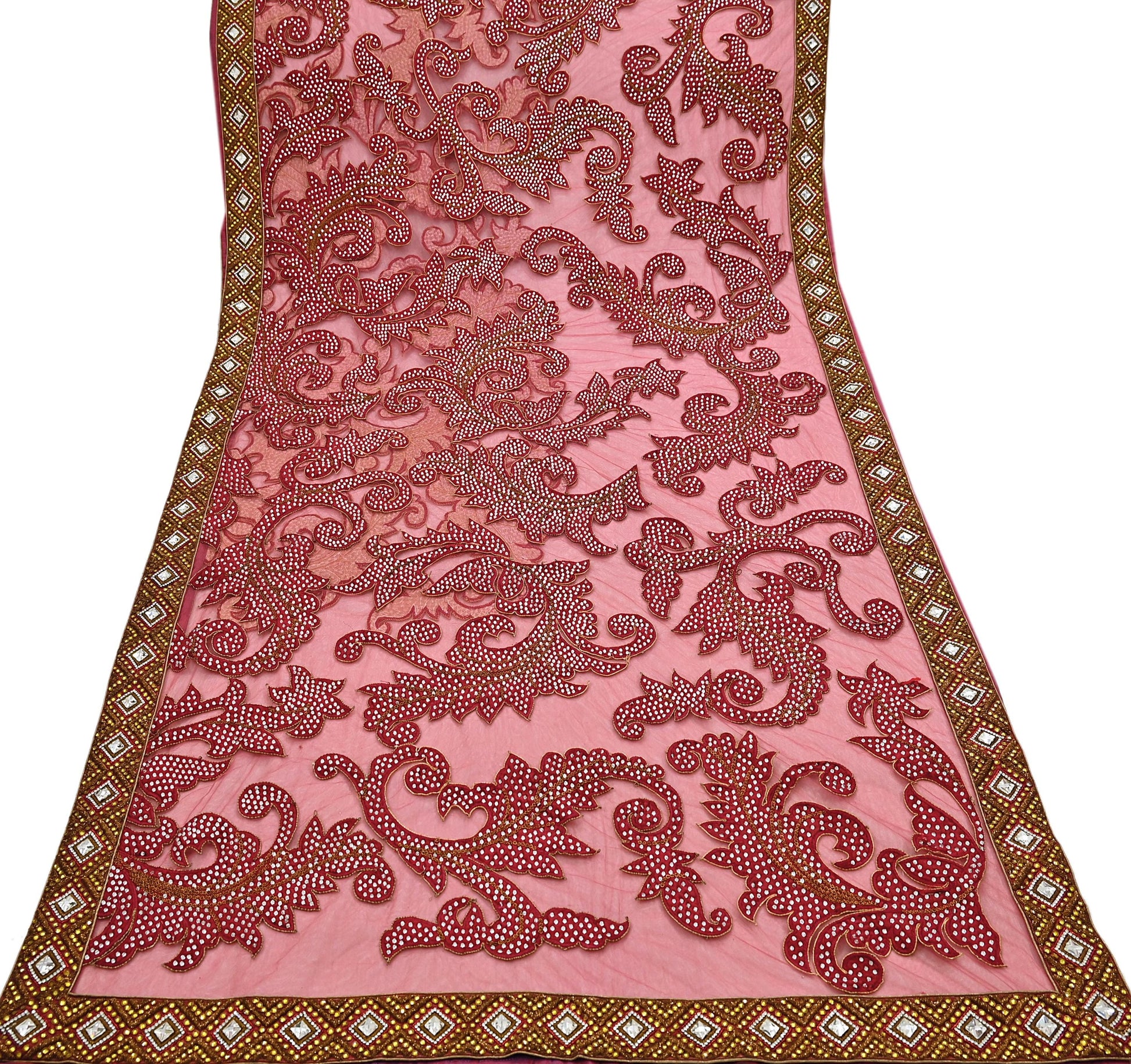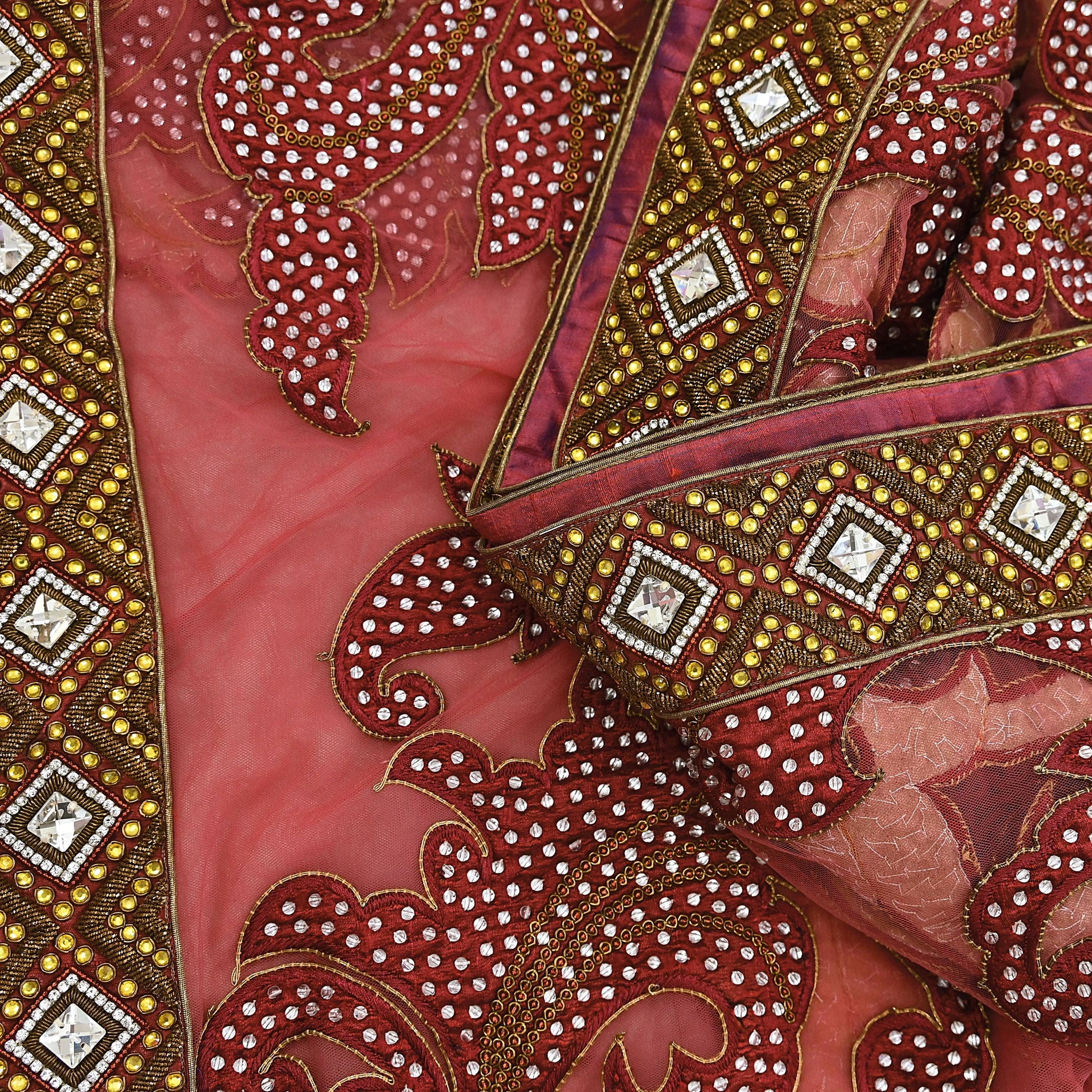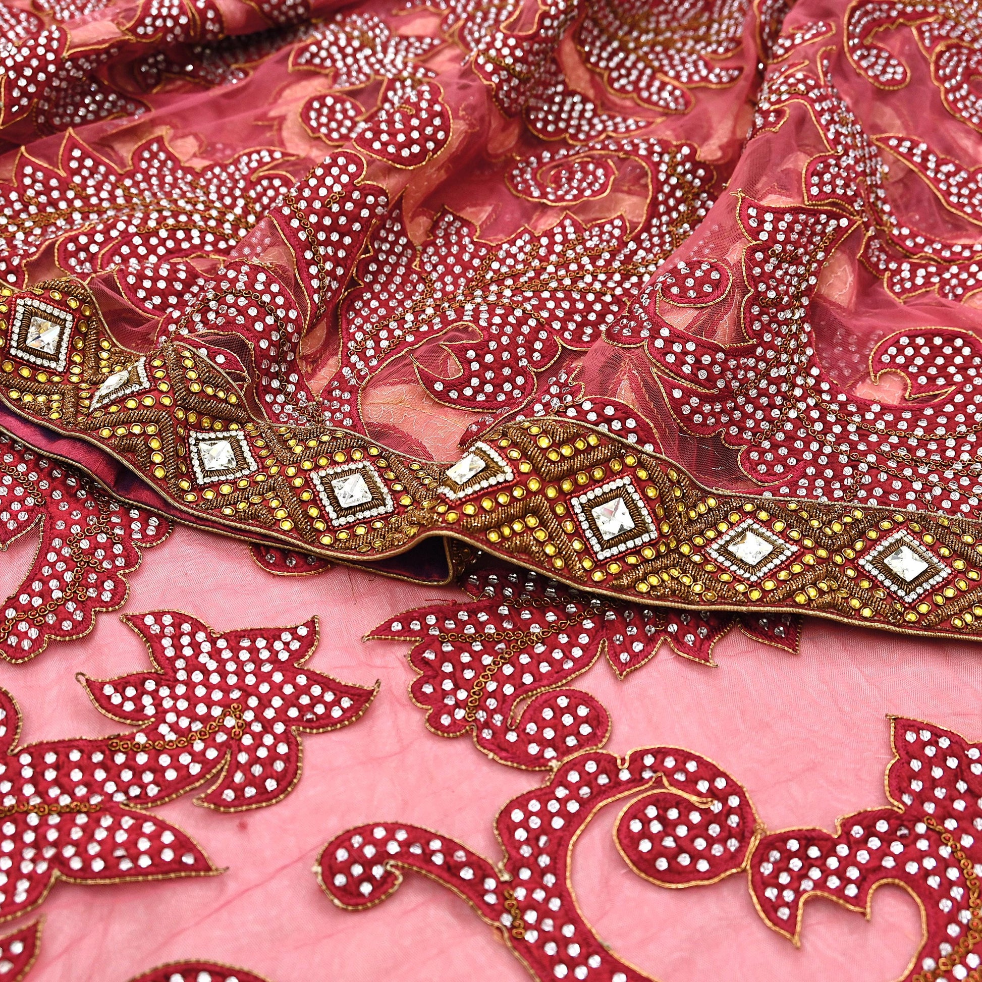 Indian New Heavy Sari Red Net/Mesh Hand Embroidered Designer Manish Malhotra Sarees 6Yd Ethnic Zardozi/Dabka Zari With Blouse Fabric