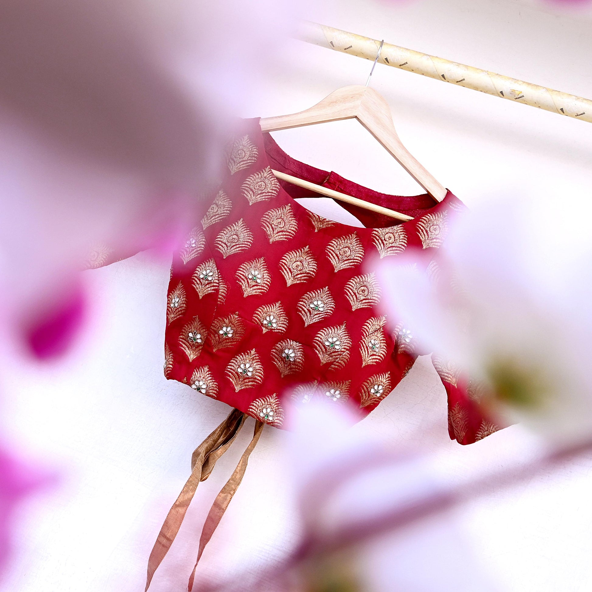 Indian New Red Pure Georgette Silk Hand Embroidered/Woven Padded Blouse/Top/Crop Party wear Bollywood One Of a Kind Blouse