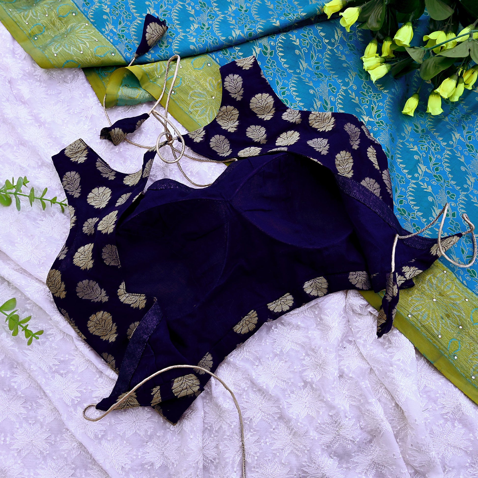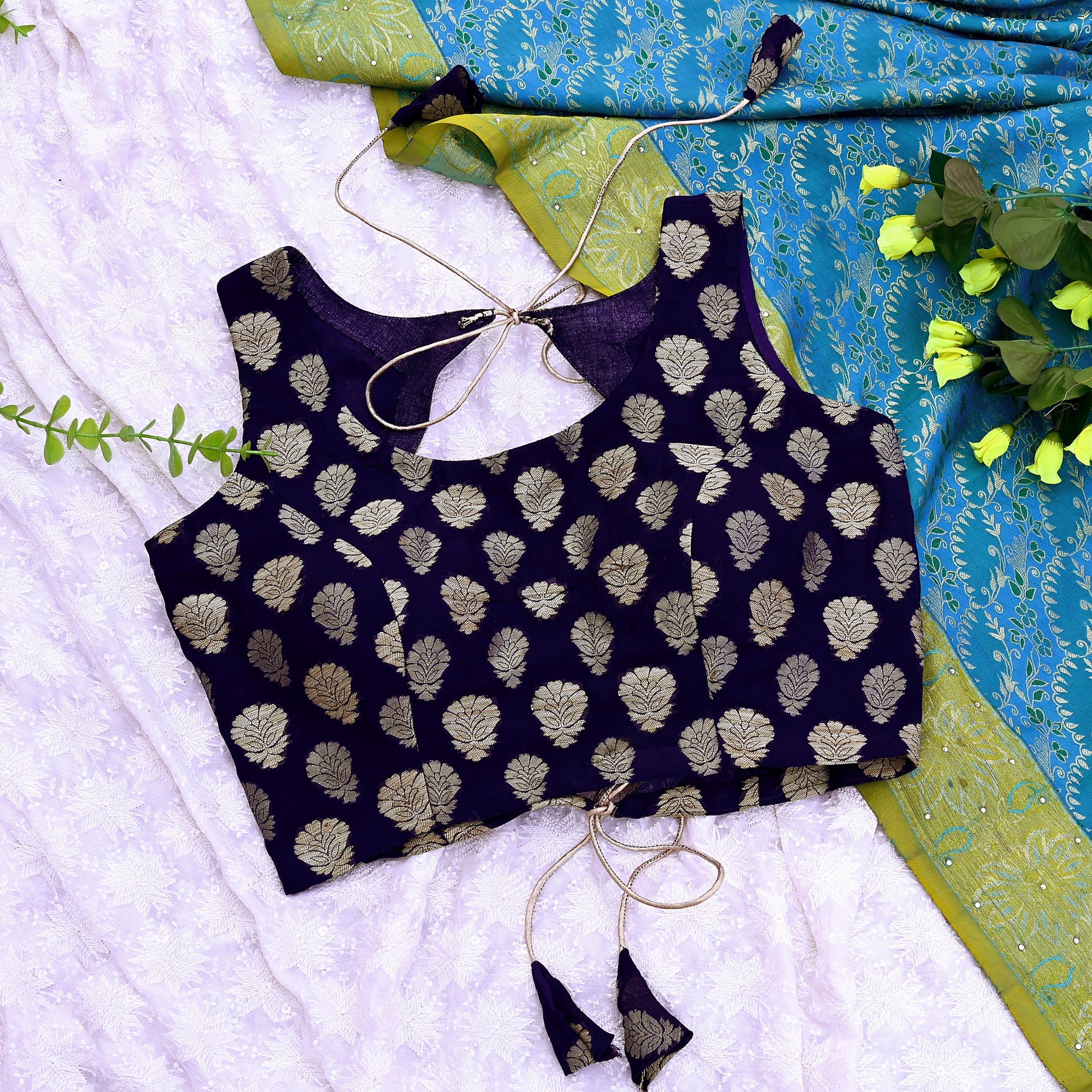 Stunning Blue Colored Pure Georgette Silk padded blouse/top/crop.