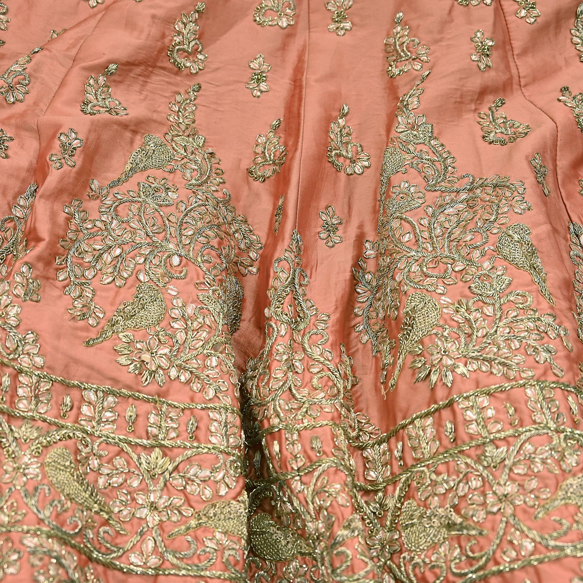 Indian party wear Peach Net Raw silk Hand Embroidered Semi Stitched Lehenga Set of 2pcs Bollywood style wedding wear