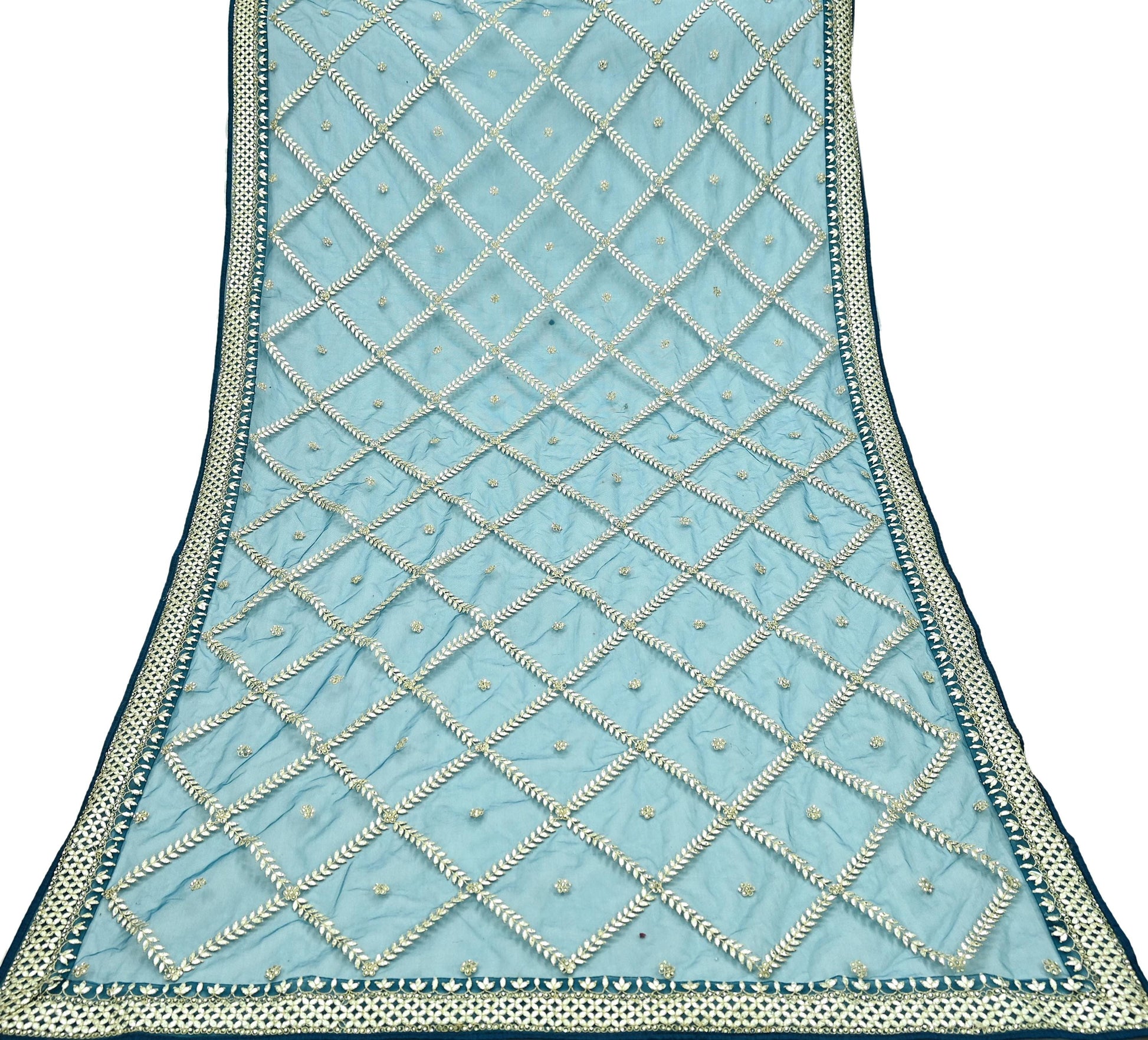 Indian Pre-owned Heavy Dupatta Blue Net Long Stole Hand Embroidered By Designer Abu Jani Scarves Bridal Veil