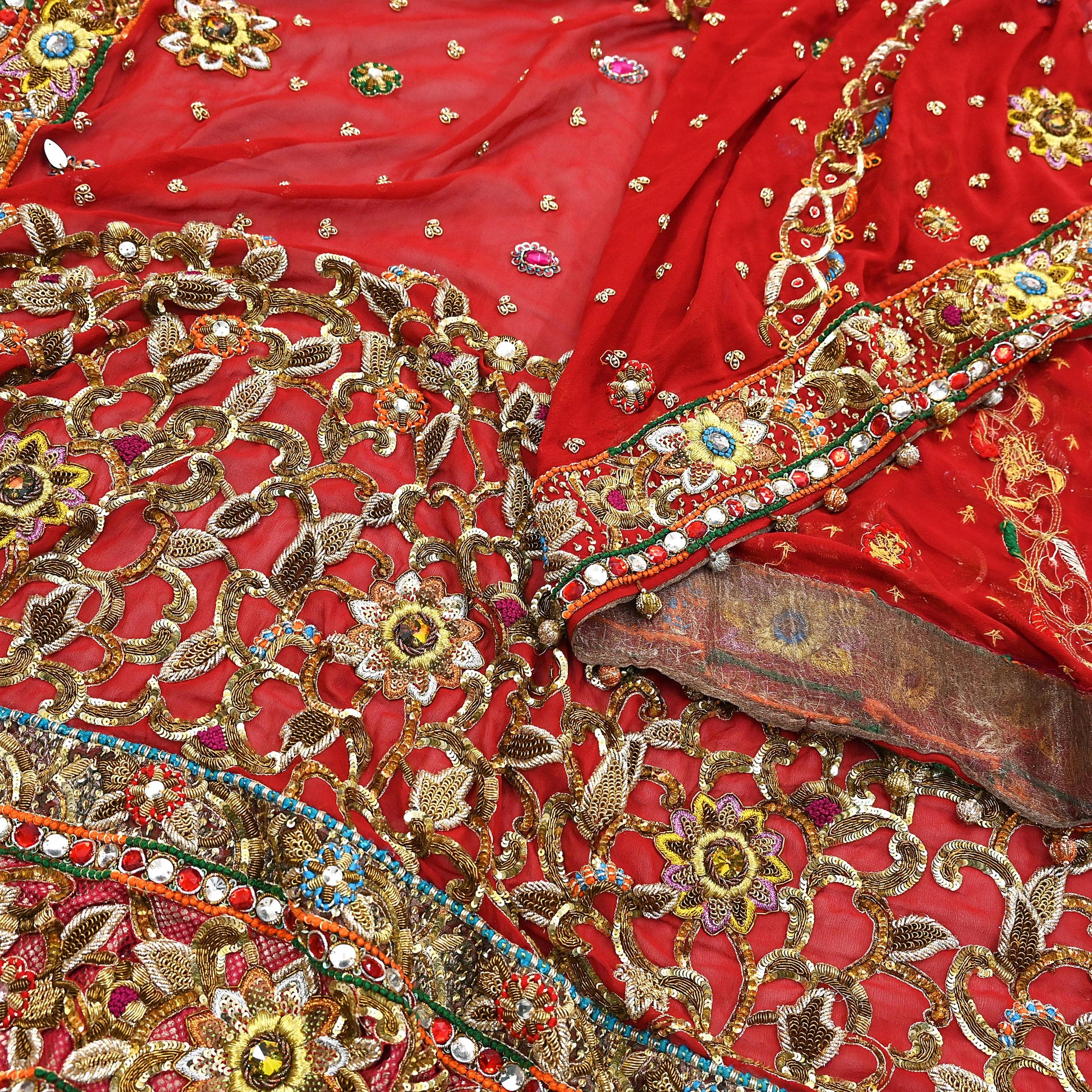 Indian Pre-owned Heavy Red Pure Georgette Silk Hand Embroidered Dupatta Designer By Manish Malhotra Bridal Wear Dabka Zardozi Veil Hijab