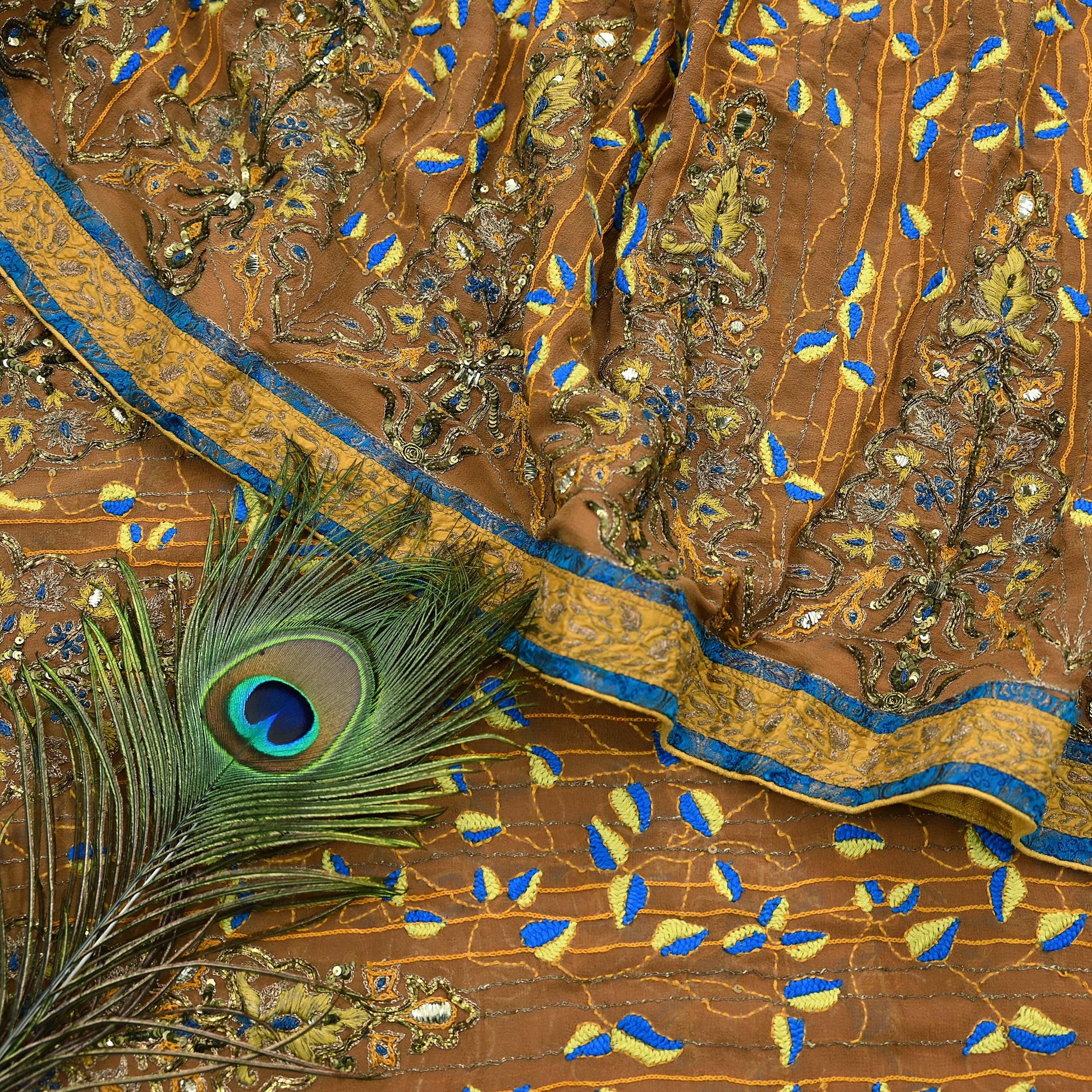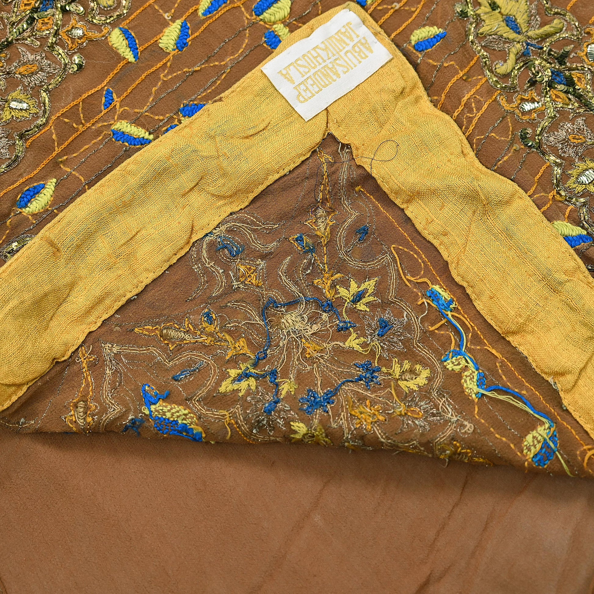 *Vintage Heavy Beautiful Brown Colored Hand Embroidered Pure Georgette Silk Designer Abu Jani Sandeep khosla Sari.