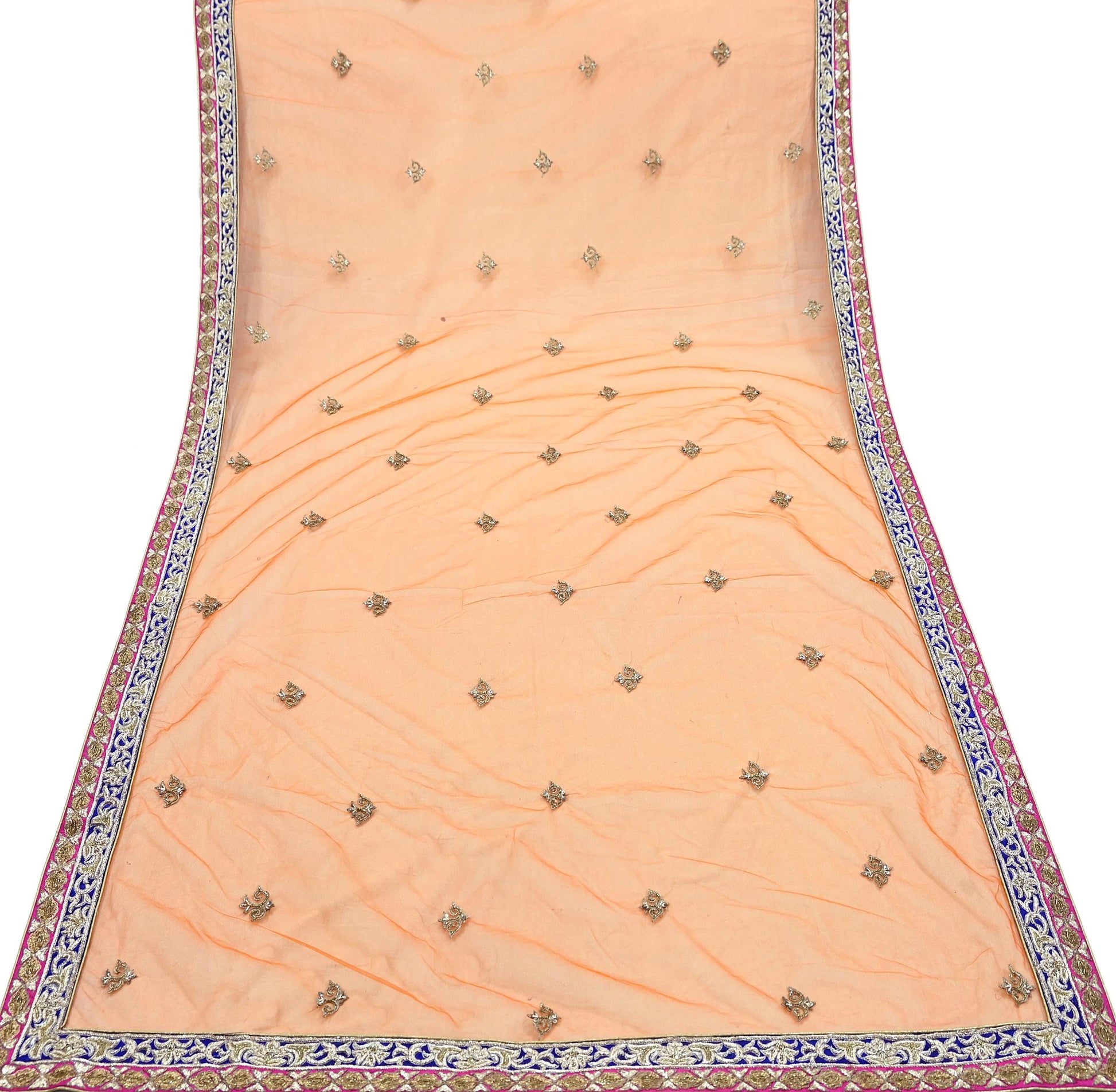 Indian Pre-owned Heavy Wedding Dupatta Orange Net Long Stole Hand Embroidered By Designer Sabyasachi Scarves Zardozi Bridal Veil