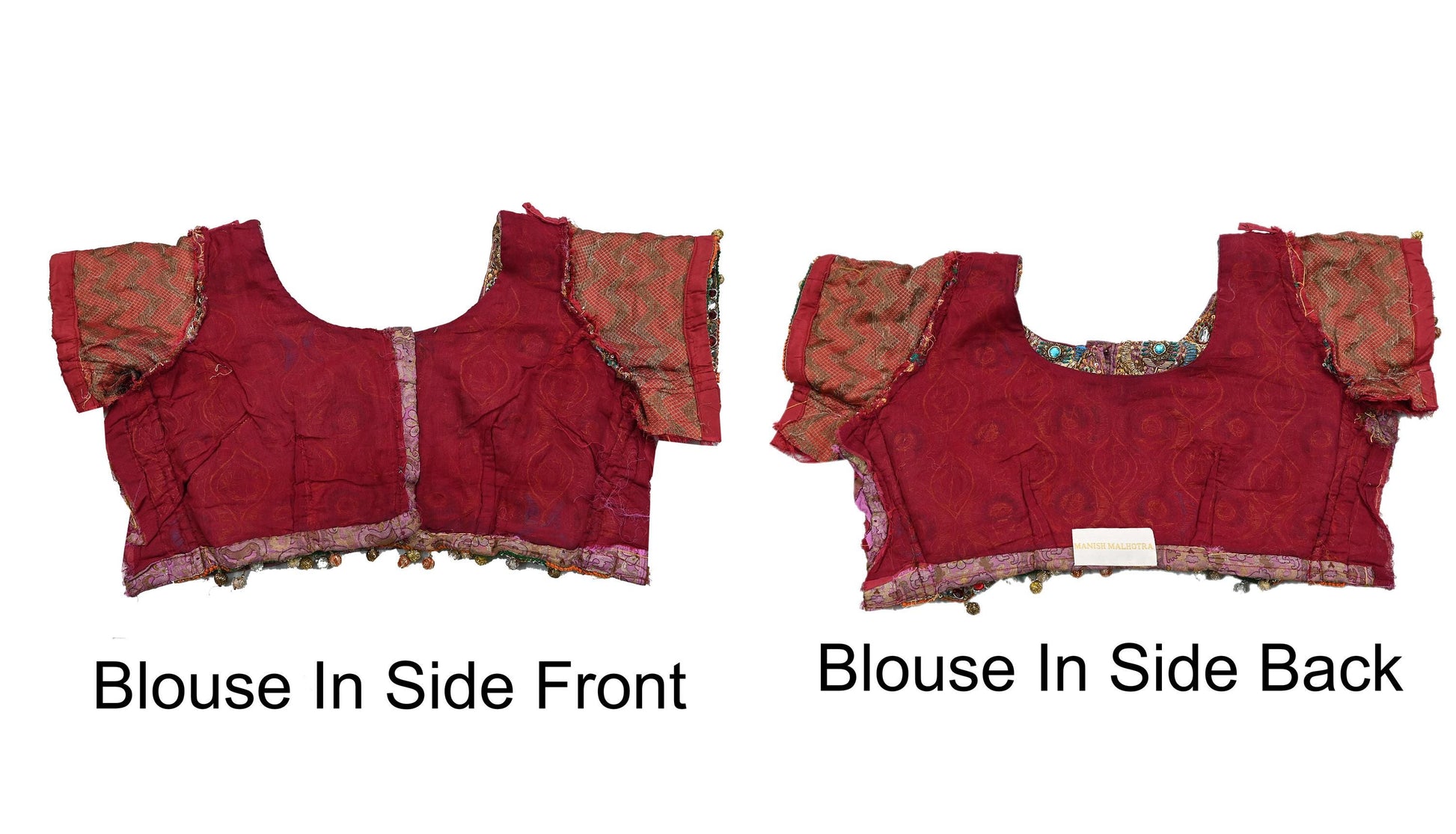 Indian Pre-owned Red Pure satin silk Hand Embroidered By Designer manish malhotra Blouse/Top/Crop M Size Party wear Bollywood