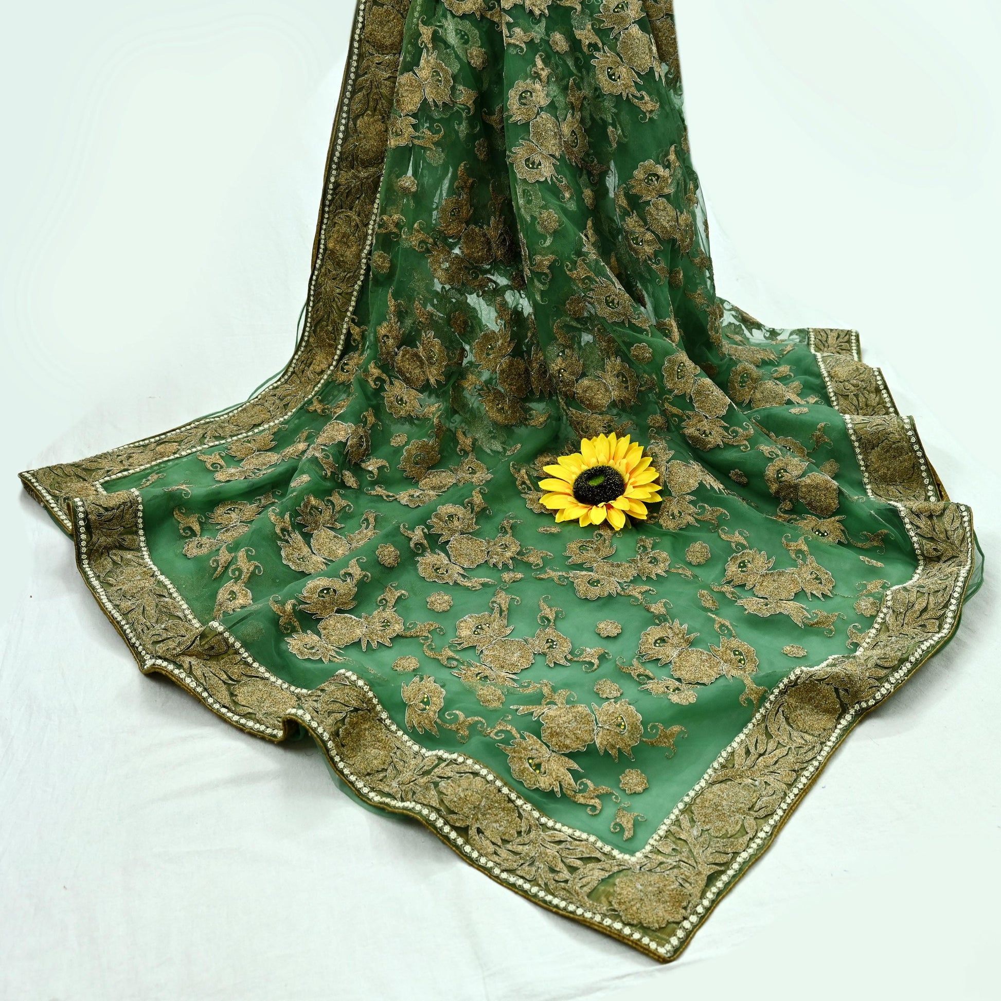 Beautiful Green Hand-Embroidered Manish Malhotra Designer Saree – Net Fabric