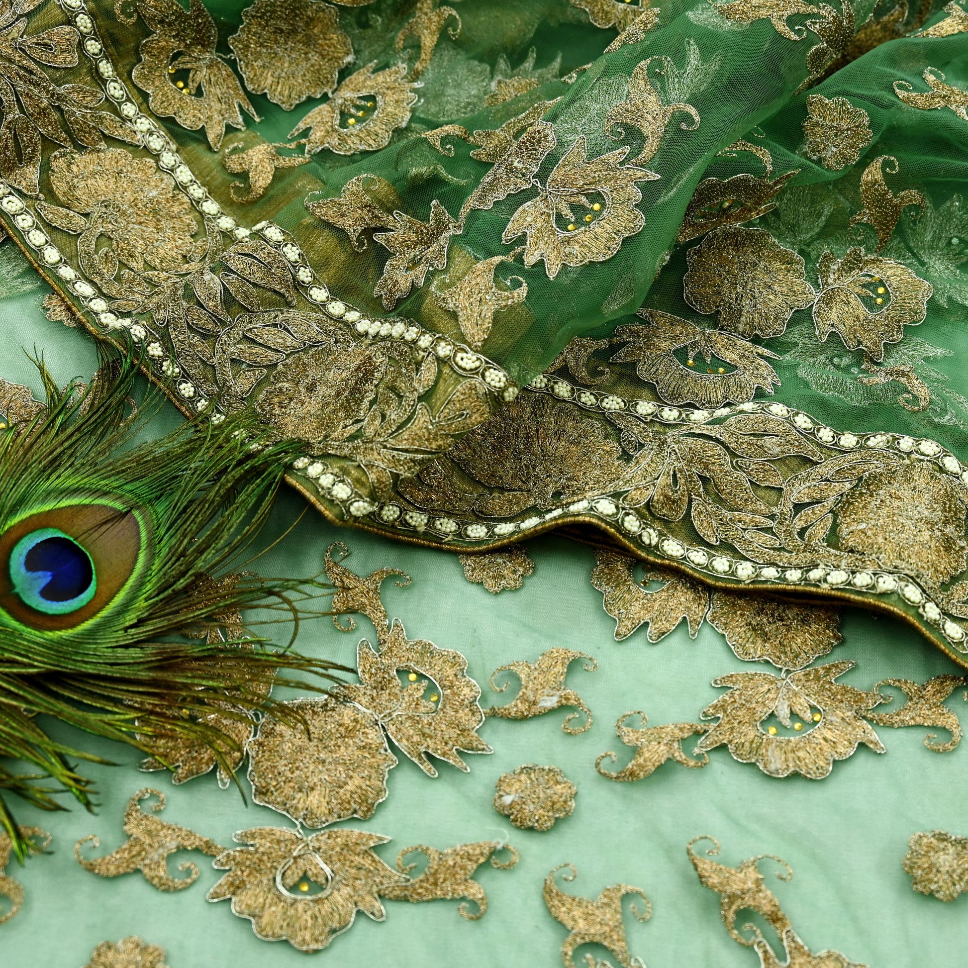 Indian Pre-Owned Sari Green Net/Mesh Hand Embroidered Designer Manish Malhotra Sarees 6Yd Ethnic Zardozi/Dabka Zari Wedding Saree