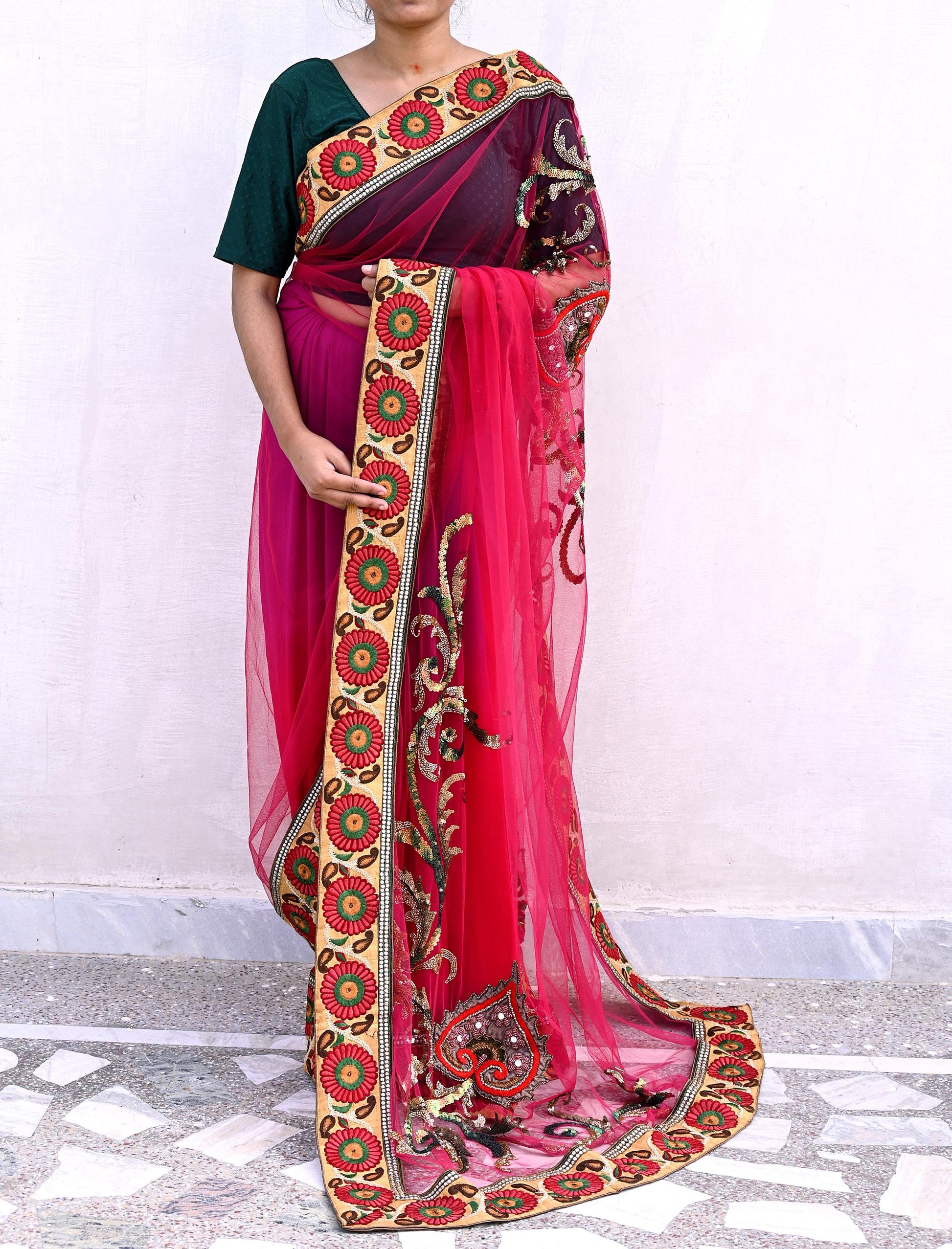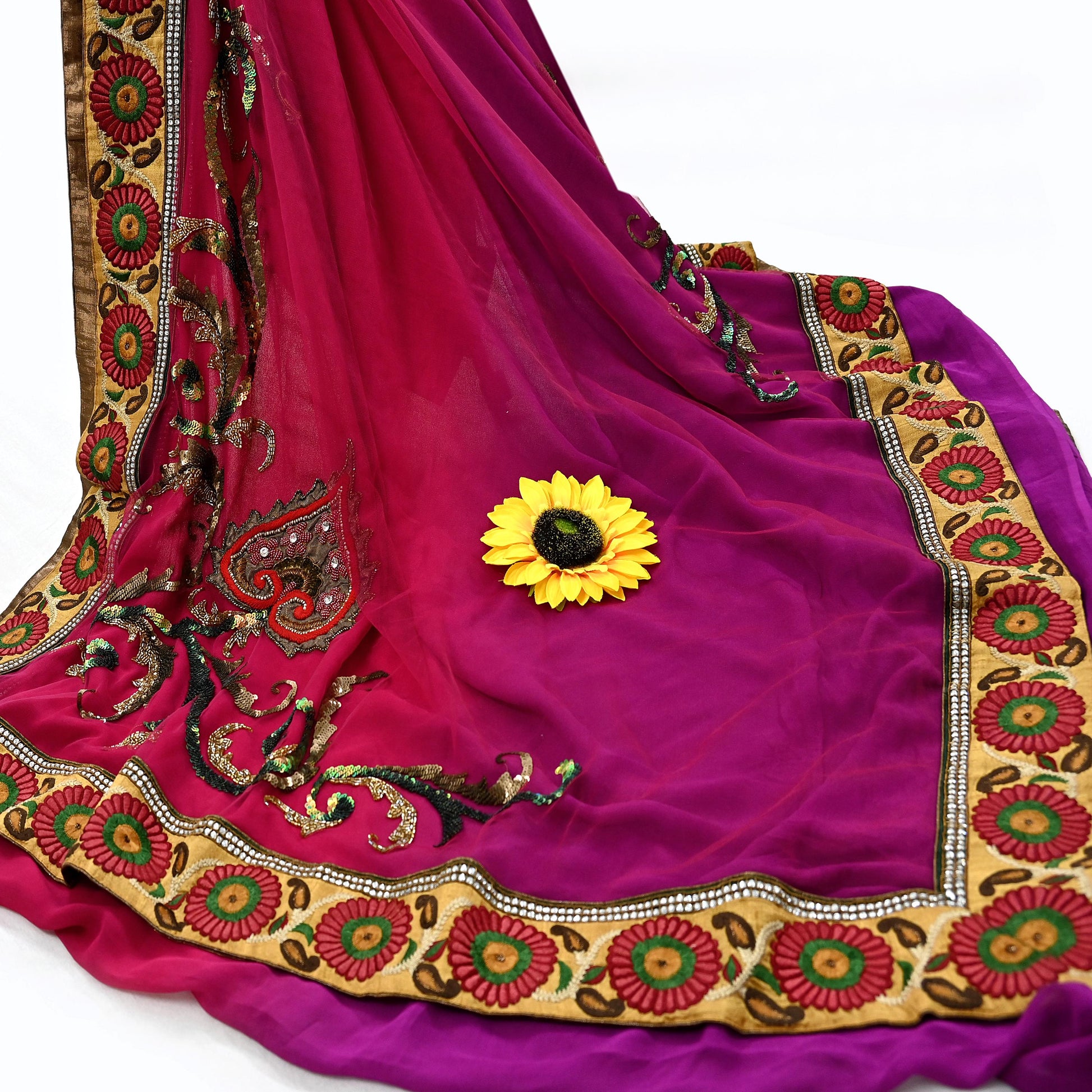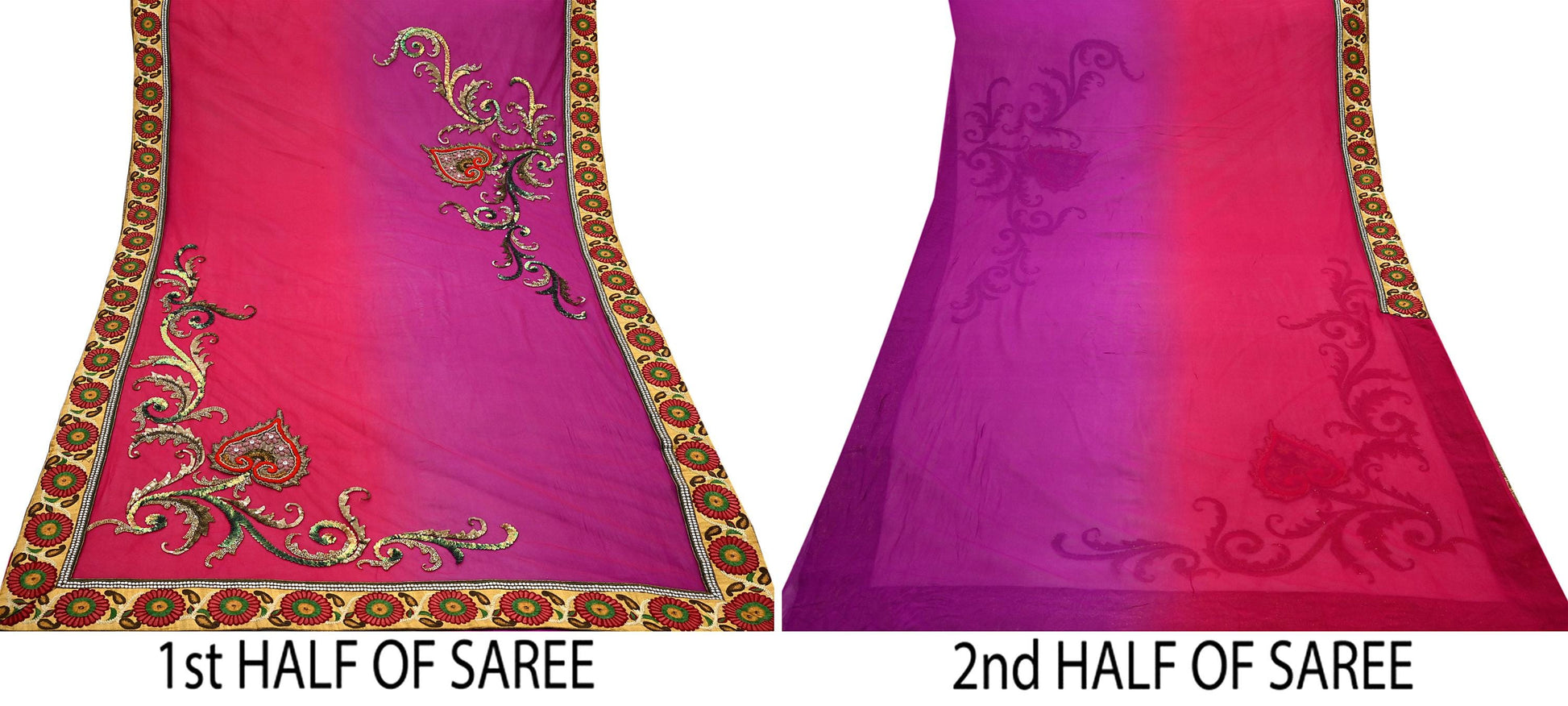 Indian Pre-Owned Sari Pink & Purple net,Pure Georgette Silk Hand Embroidered Designer Manish Malhotra Sarees Ethnic Dabka Zari Wedding Saree