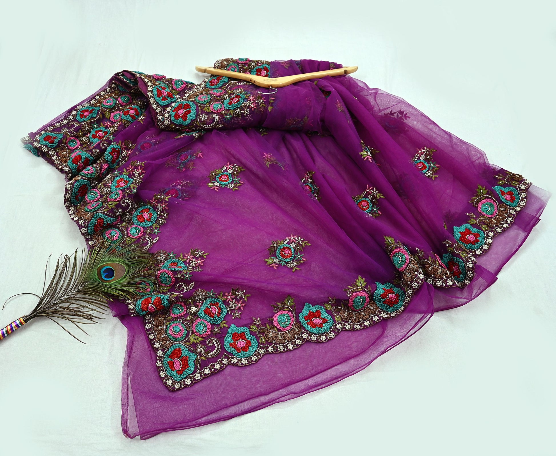 *Beautiful Purple Colored Hand Embroidered Manish Malhotra Designer Saree Net Fabric.